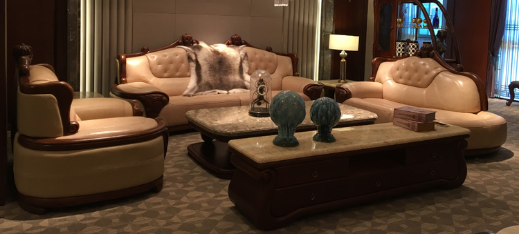 富家美佳欧式真皮沙发组合客厅别墅豪华全实木雕花新古典家具B338