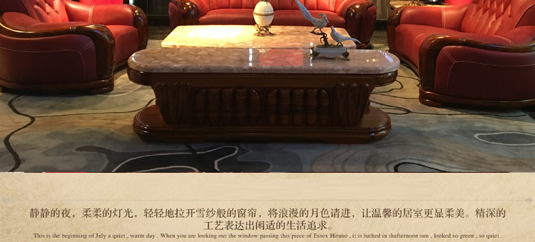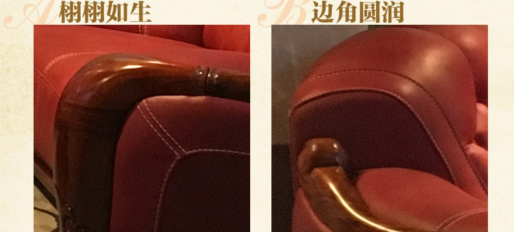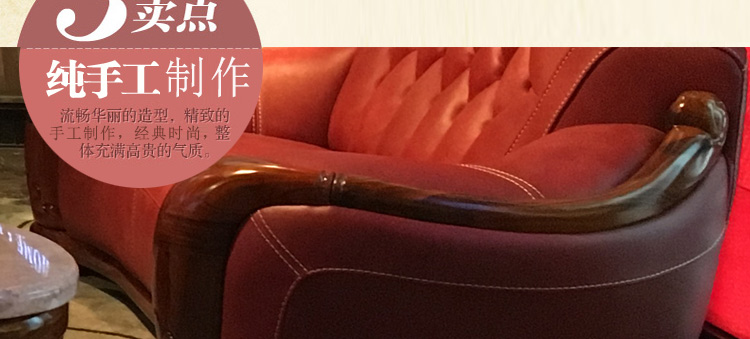 富家美佳乌金木欧式真皮沙发组合 高档家具头层牛皮实木别墅客厅美式沙发B353