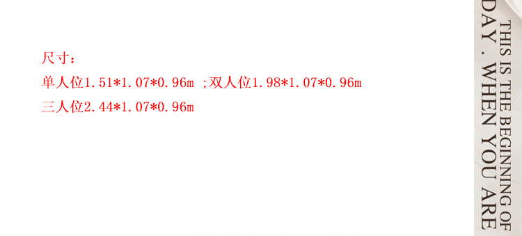 尺寸:单位沙发:1.51*1.07*0.96;二位沙发:1.98*1.07*0.96;三位沙发:2.44*1.07*0.96