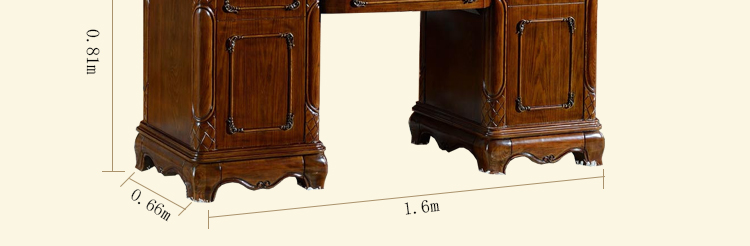 富家美佳水曲柳欧式全实木书桌 1.6米家用欧式古典办公电脑桌K82