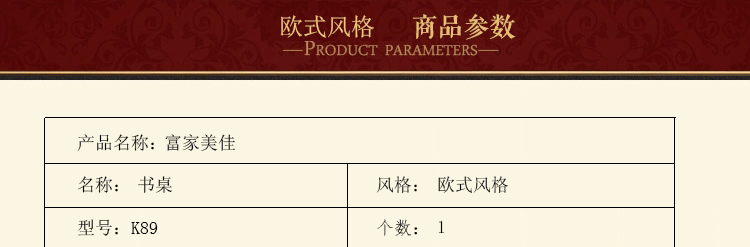 富家美佳全实木书桌电脑桌欧式书桌家具1.5米简约欧式书台办公桌K89