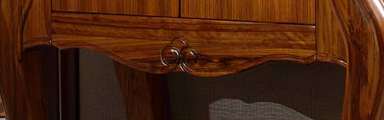 由天然木材制成的家具,家具表面一般都能看到木材的纹理。它的优点就在于使用天然木材,外观更自然,而且结实耐用,绿色环保,环保性比较好,外观自然,纹理清晰,装饰效果很不错,显得高端大气