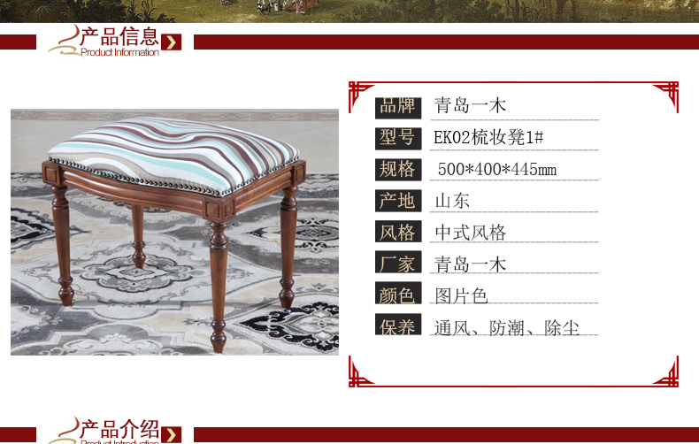 青岛一木中式风格简约实用卧室休闲化妆凳舒适高档创意妆凳EK02梳妆凳1#