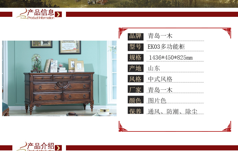 青岛一木中式风格实木客厅实用装饰柜大容量储物多功能柜EK03多功能柜