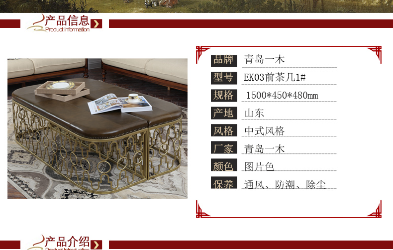 青岛一木中式风格高档奢华创意长茶几大小户型通用茶几EK03前茶几1#