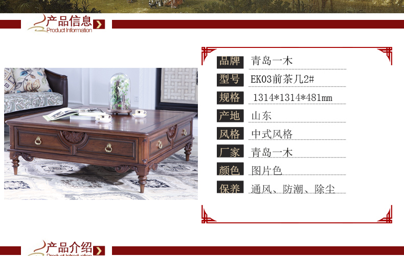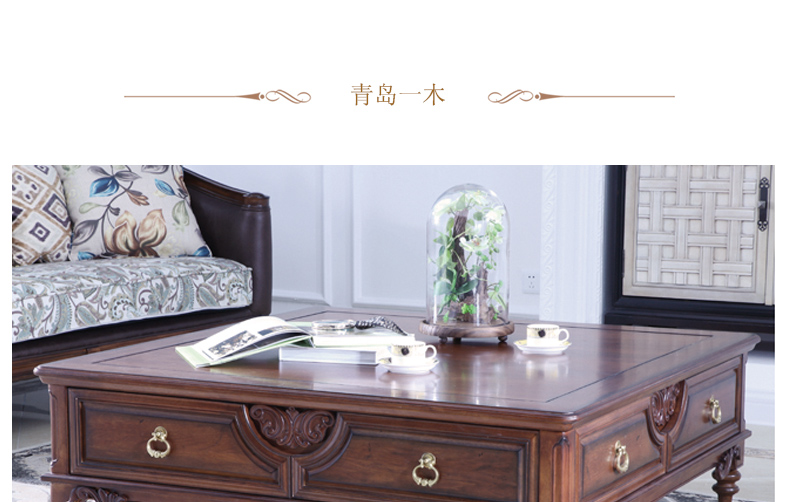 青岛一木中式风格实木客厅茶几大容量储物实用茶几EK03前茶几2#