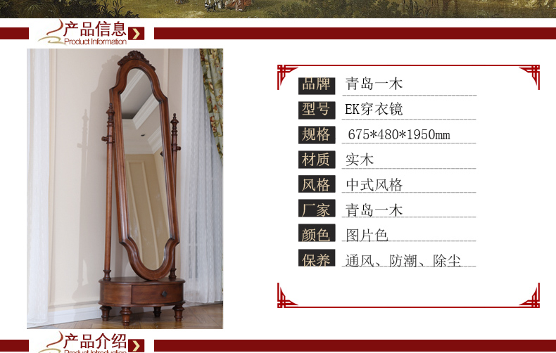 青岛一木实木中式风格简约创意穿衣镜仿古长款穿衣镜EK穿衣镜