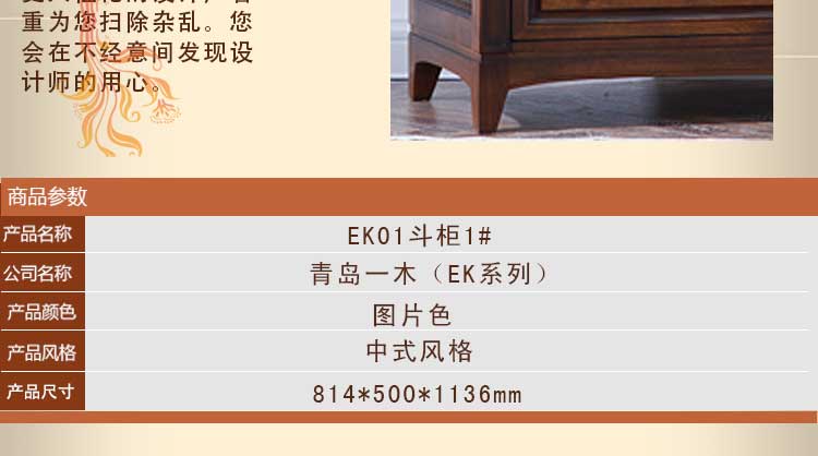 青岛一木新款客厅卧室实木家具大小户型储物柜装饰柜EK01斗柜1#