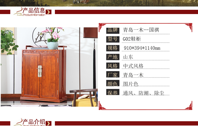 青岛一木实木大容量储物鞋柜中式风格客厅摆放鞋柜G02鞋柜