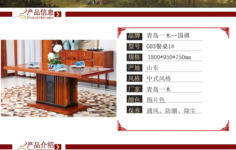 青岛一木中式风格实木餐厅实用餐桌高档简易休闲餐桌G03餐桌1#