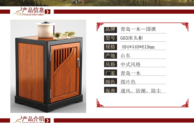 青岛一木中式风格高档创意大容量卧室储物床头柜大小户型床头柜G03床头柜