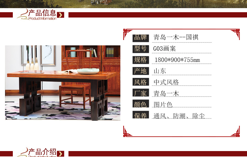 青岛一木实木书房实用书桌高档创意画案中式风格画案G03画案