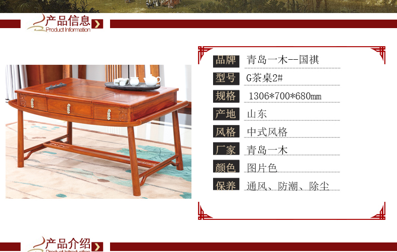 青岛一木高档创意客厅休闲桌中式风格古典奢华茶桌G茶桌2#