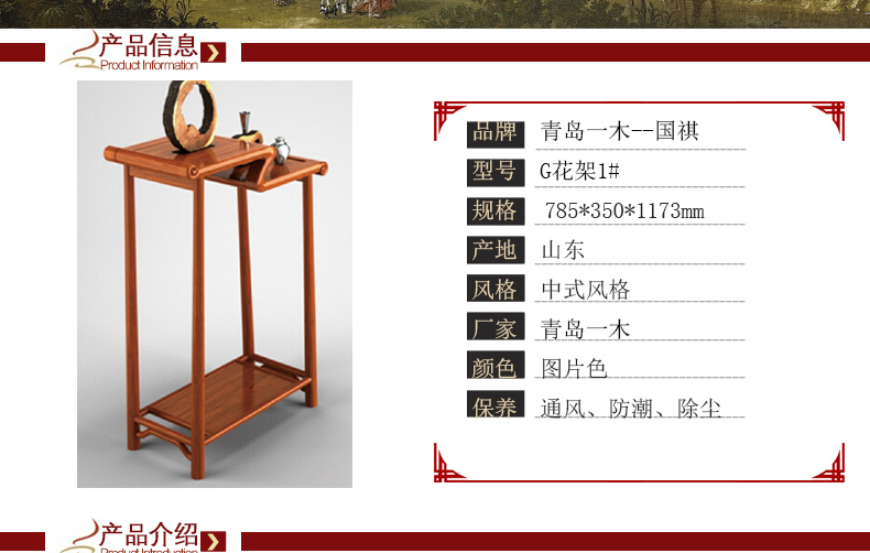 青岛一木高档休闲客厅花架中式风格仿古装饰架实用花架G花架1#