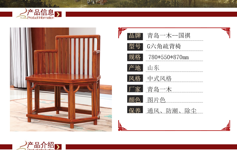 青岛一木中式风格高档休闲椅创意实木奢华椅子G六角疏背椅