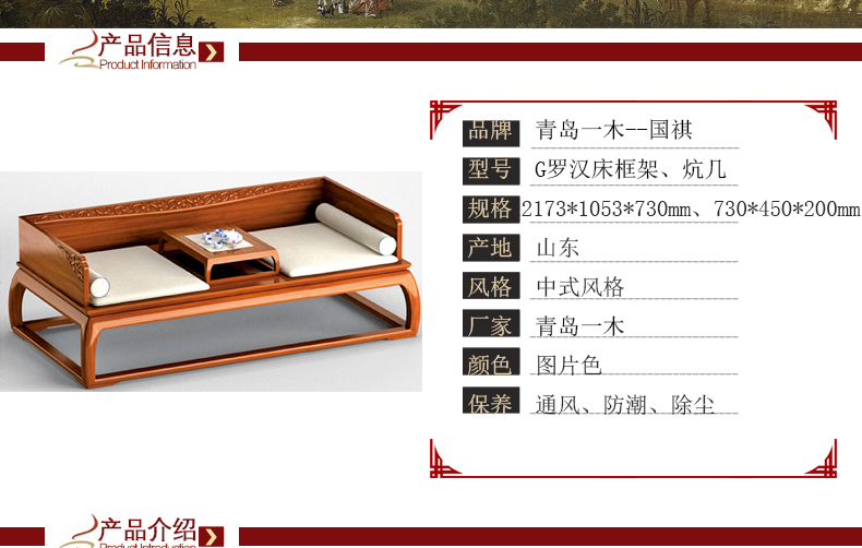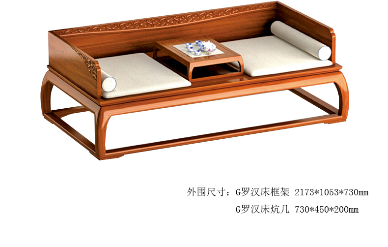 外围尺寸:G罗汉床框架2173*1053*730mm、 G罗汉床软体 G罗汉床炕几730*450*200mm