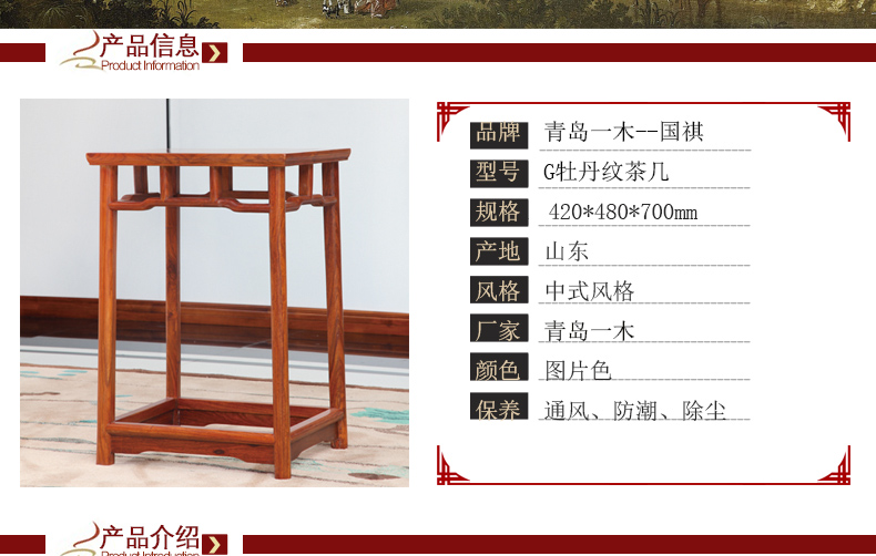 外围尺寸:G牡丹纹茶几420*480*700mm