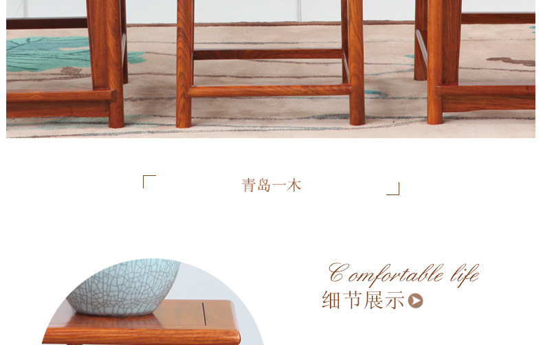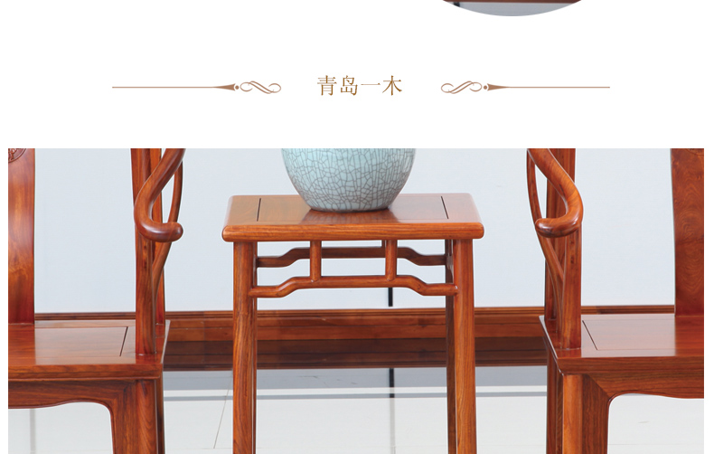 青岛一木中式风格高档休闲茶几实木客厅仿古茶几G牡丹纹茶几