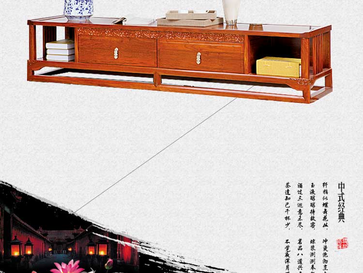 青岛一木新款客厅简约电视柜实木矮柜抽屉地柜视听柜G02电视柜1#