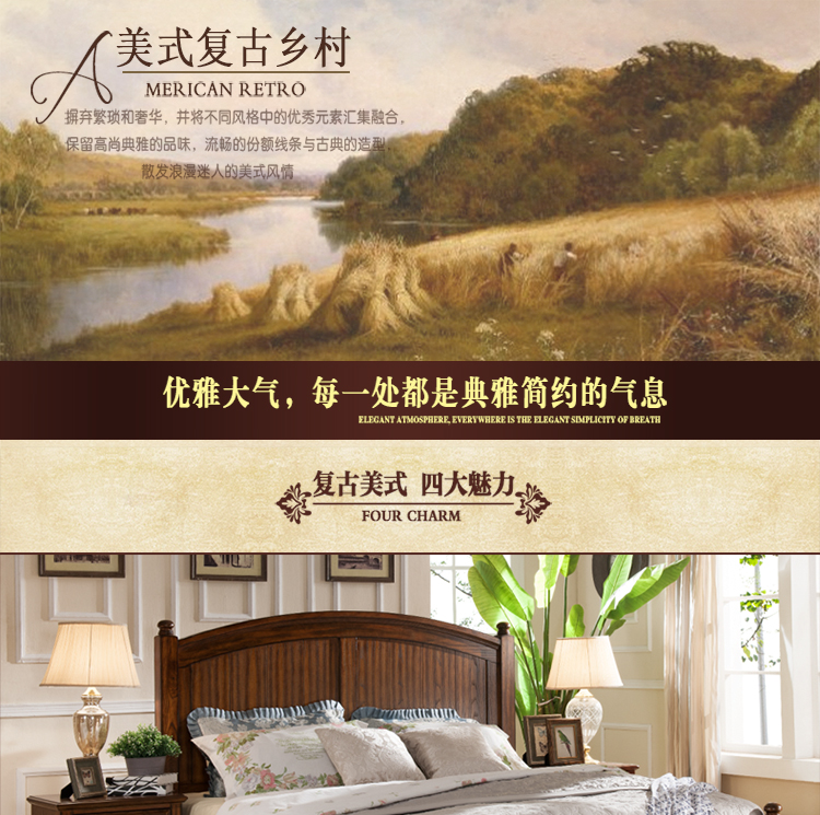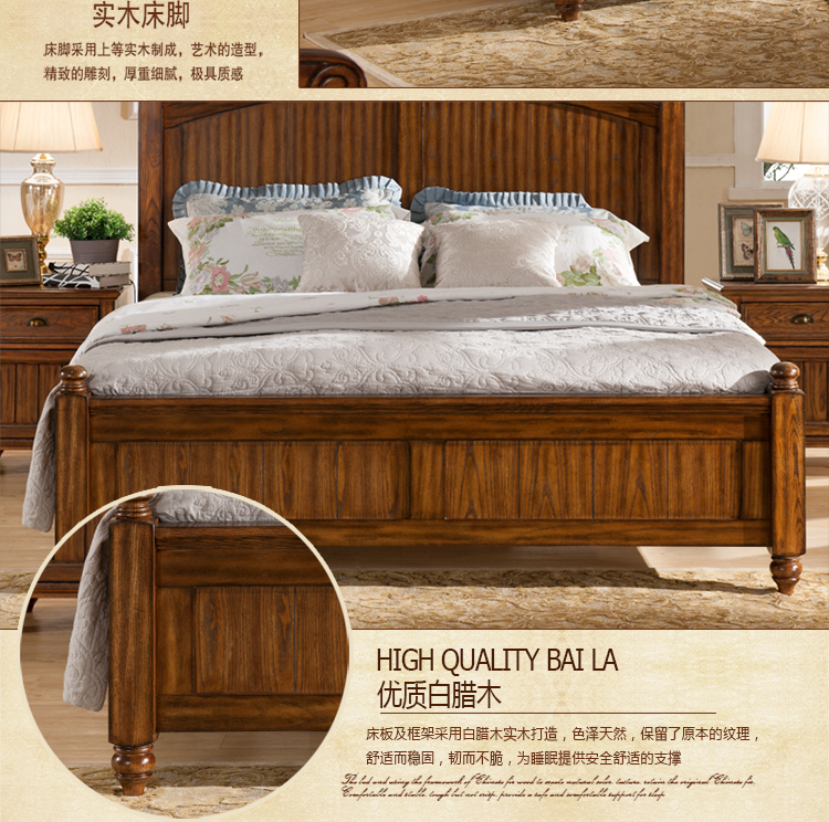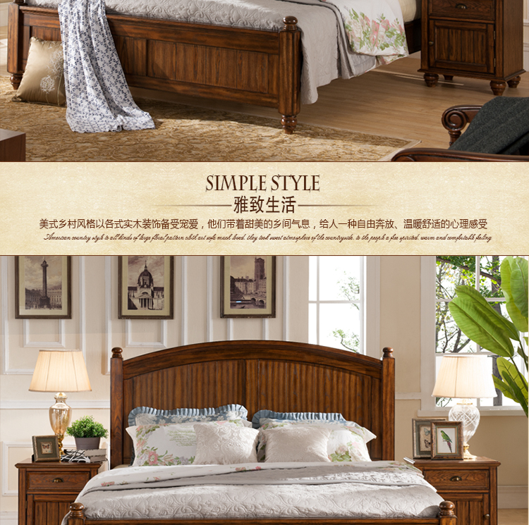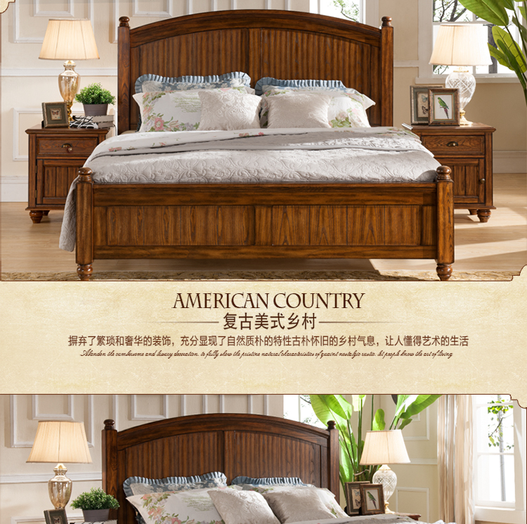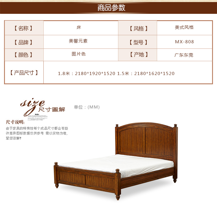 美馨元素 美式乡村实木床1.8米 美式1.5米单人床 卧室双人床 MX-808