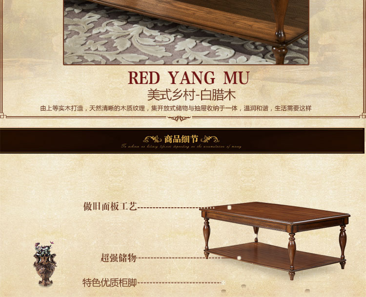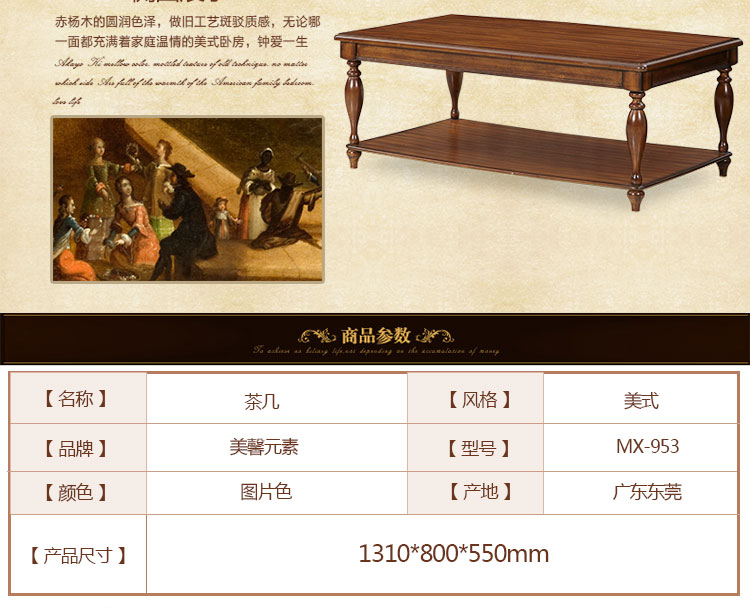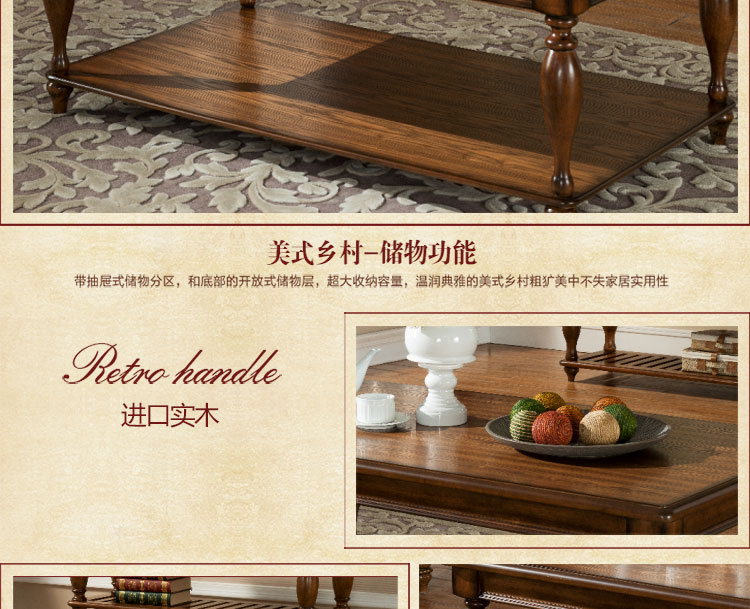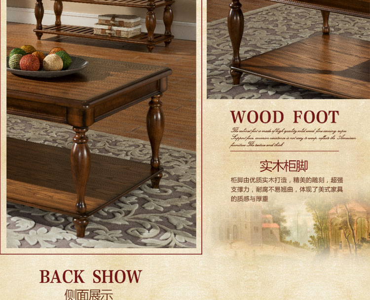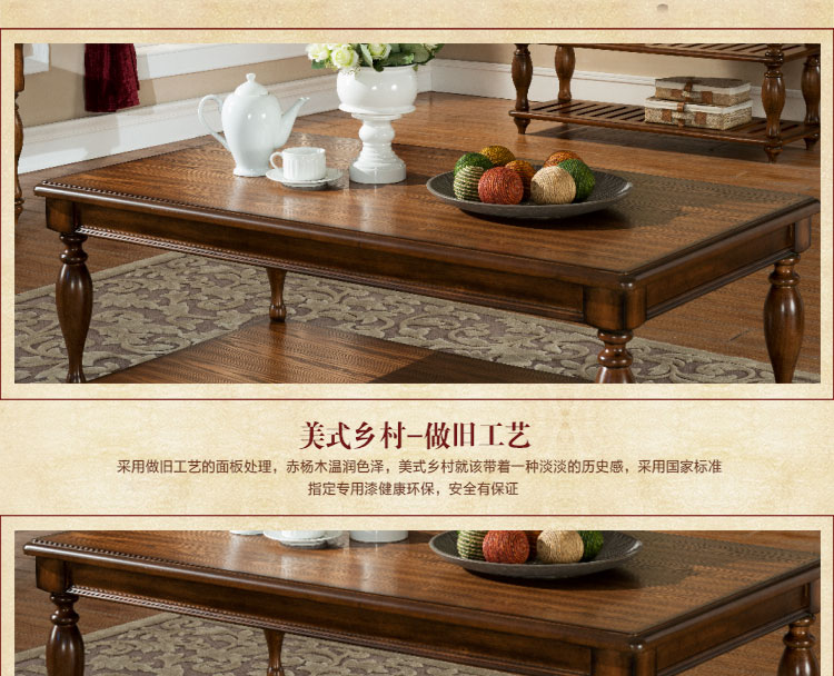 美馨元素 全实木美式茶几复古做旧乡村纯实木小户型美式家具MX-953