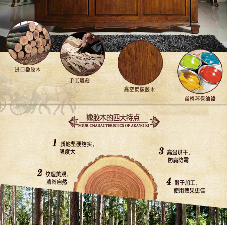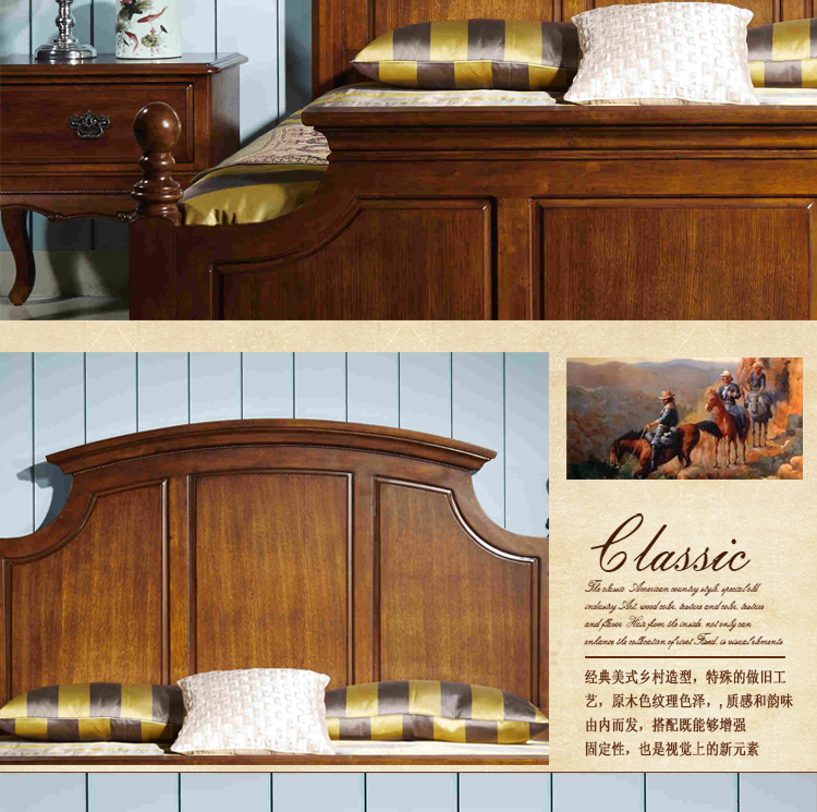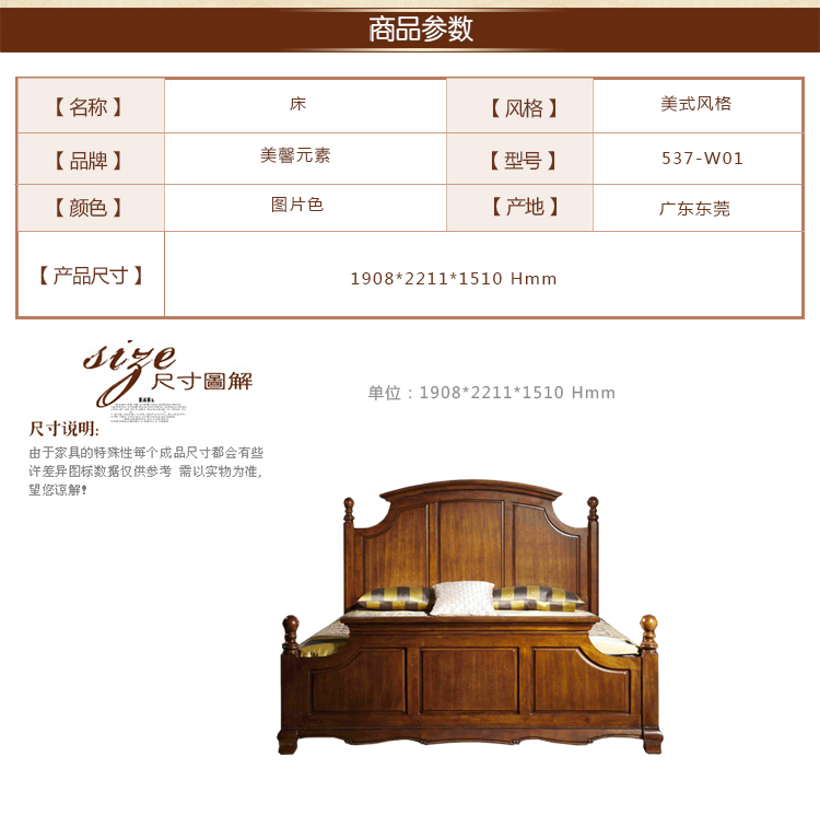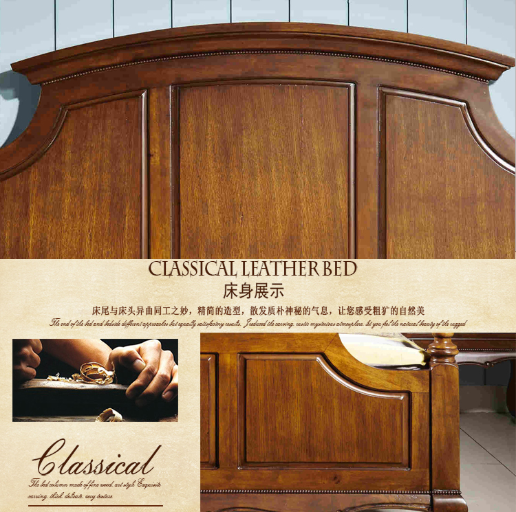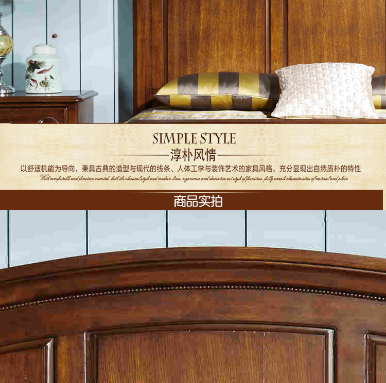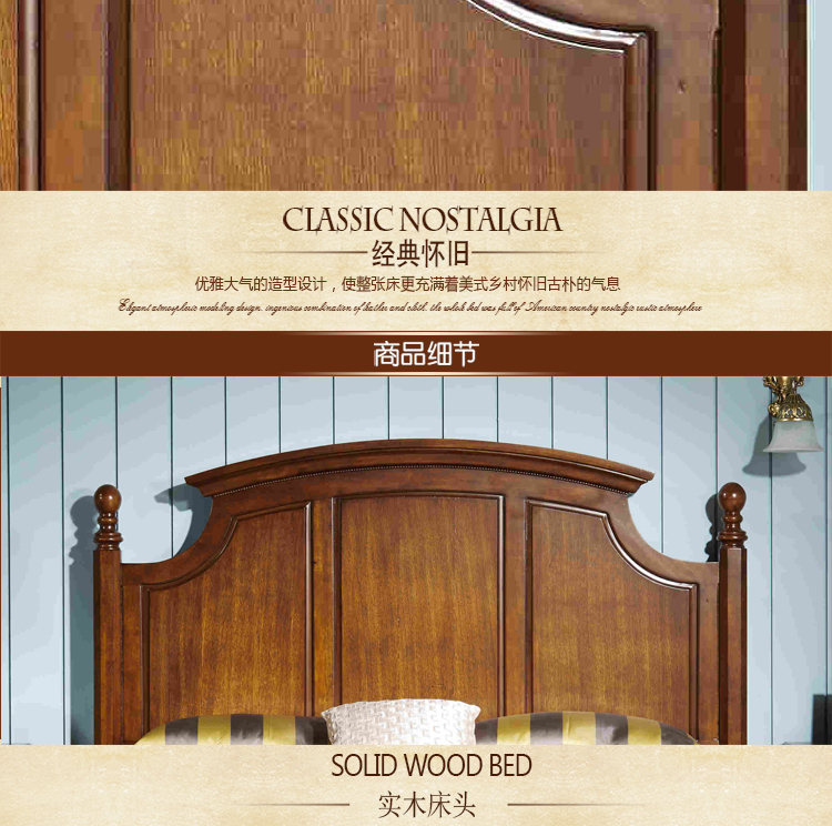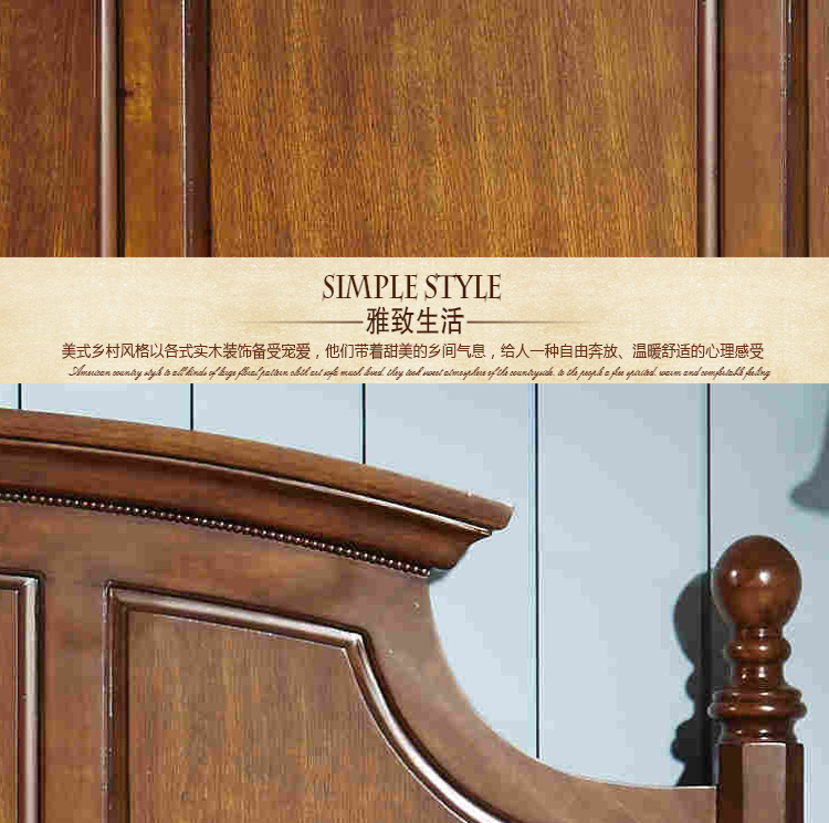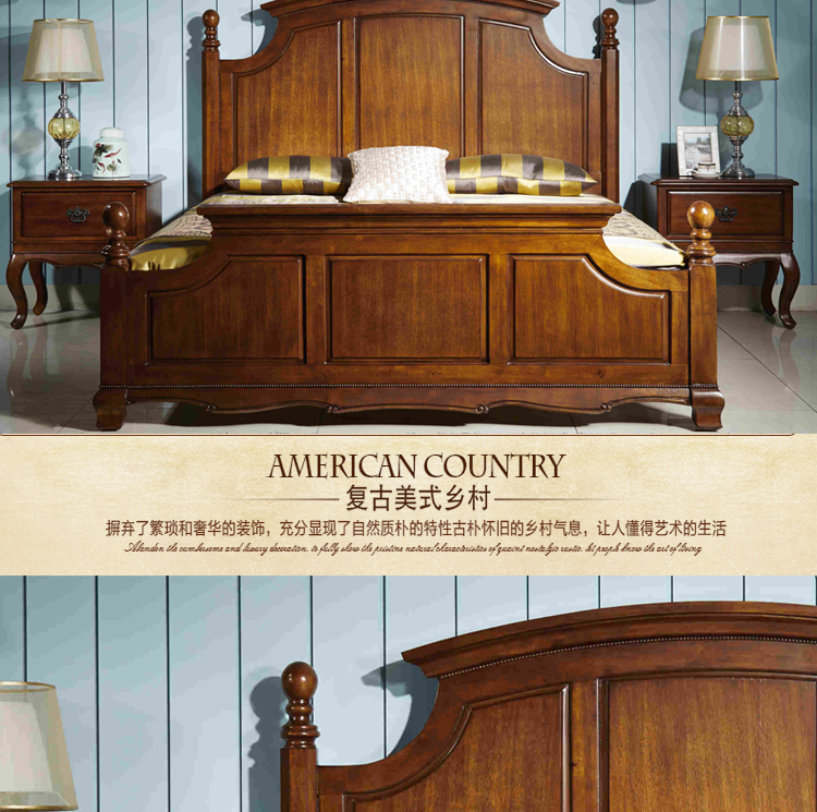 美馨元素 美式乡村实木床1.8米 美式双人床 卧室双人床 537-W01
