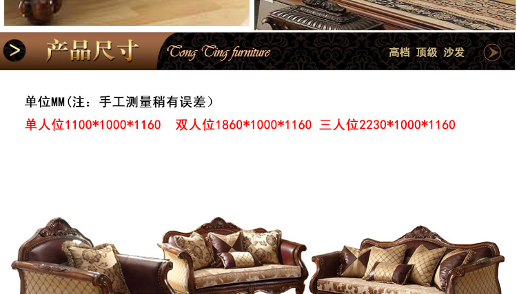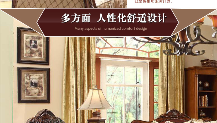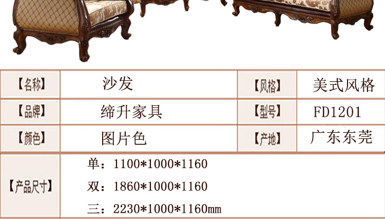 缔升家具 美式沙发全实木大小户型美式沙发组合简约客厅家具 FD1201