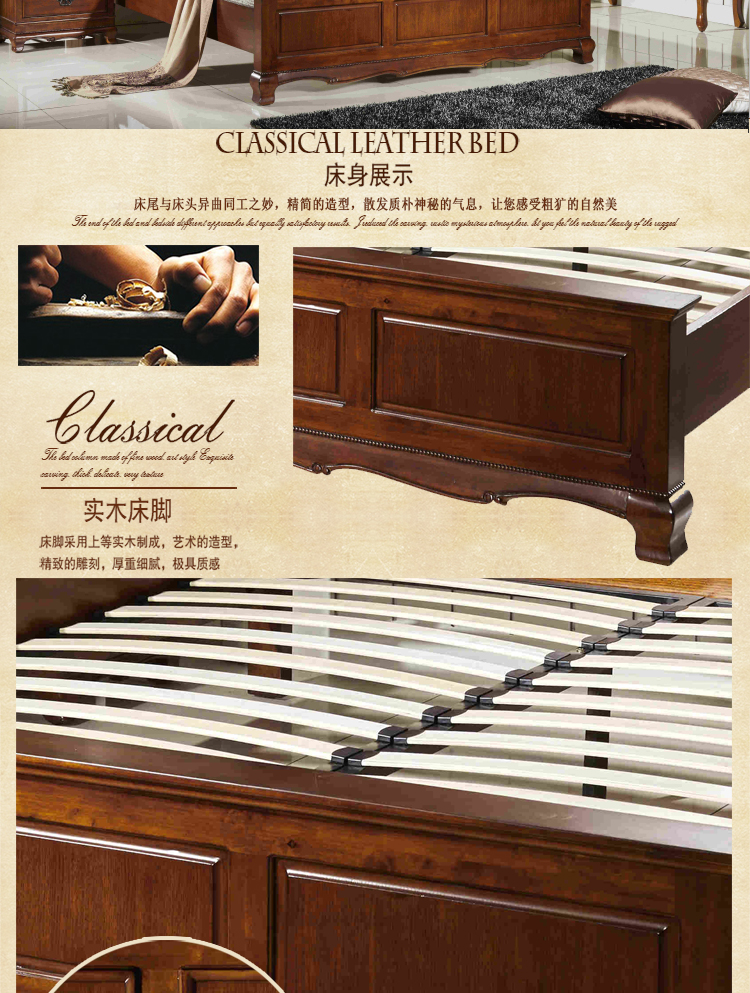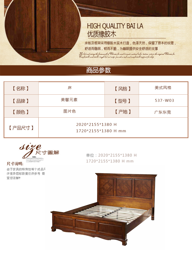 美馨元素 美式乡村实木床1.8米 美式双人床1.5米 卧室双人床 537-W03B