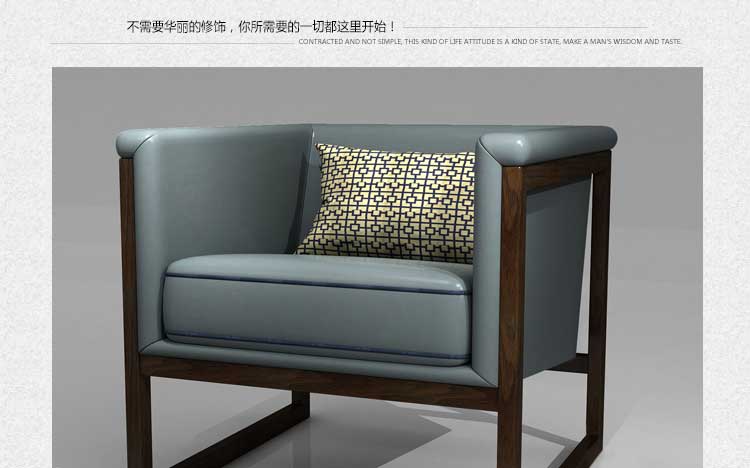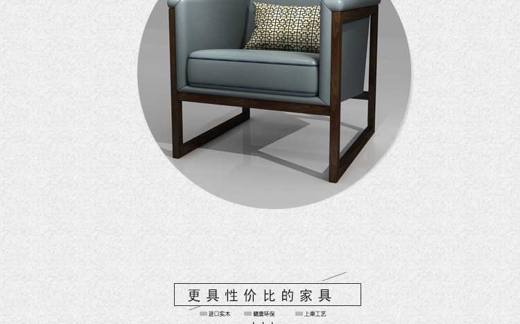 合晟东方中式风格沙发椅 真皮沙发休闲椅 实木扶手单人沙发 个性创意休闲椅X-1603Y