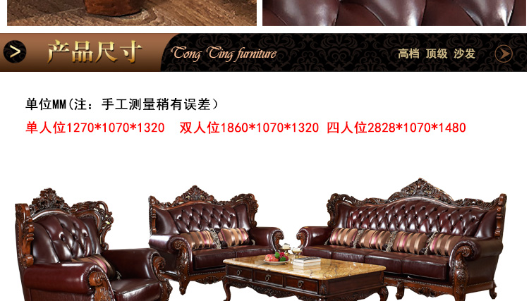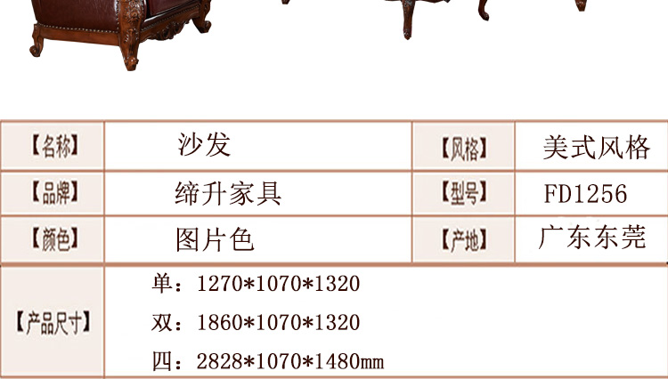 缔升家具 宜家123人位高级沙发美式沙发 真皮沙发 FD1256