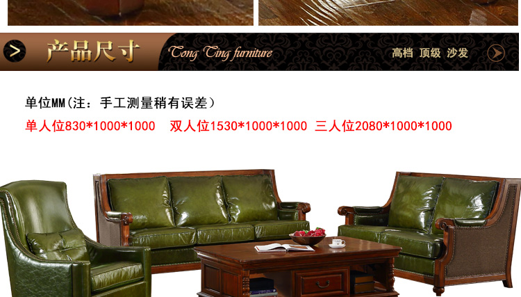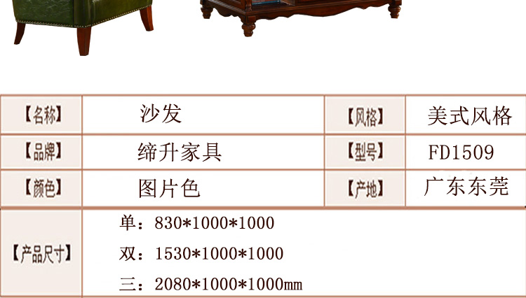 缔升家具 美式乡村高档小户型宜家沙发 真皮沙发 123人位组合沙发FD1509