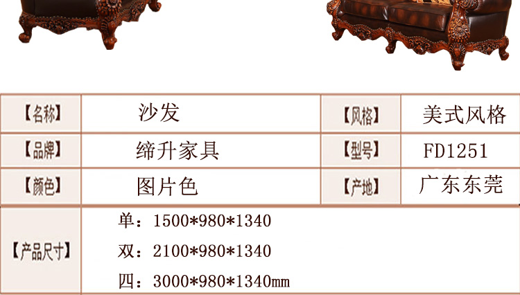 缔升家具 美式客厅沙发 复古小户型沙发 宜家简约高档沙发 FD1251