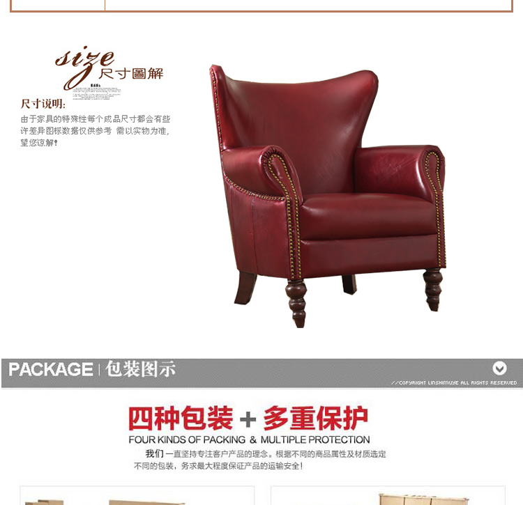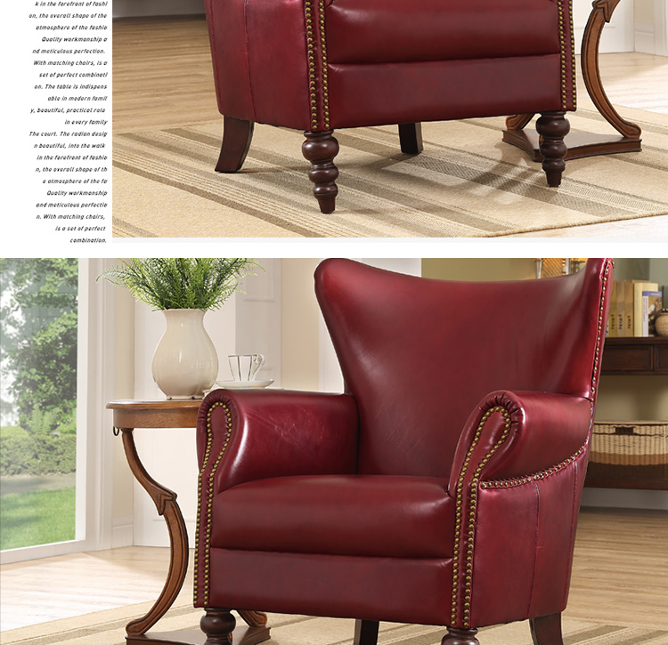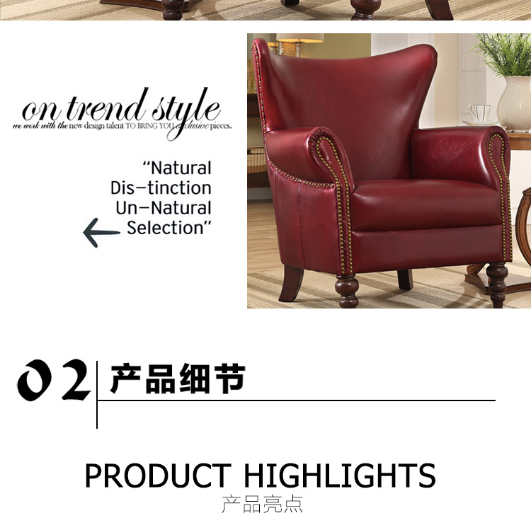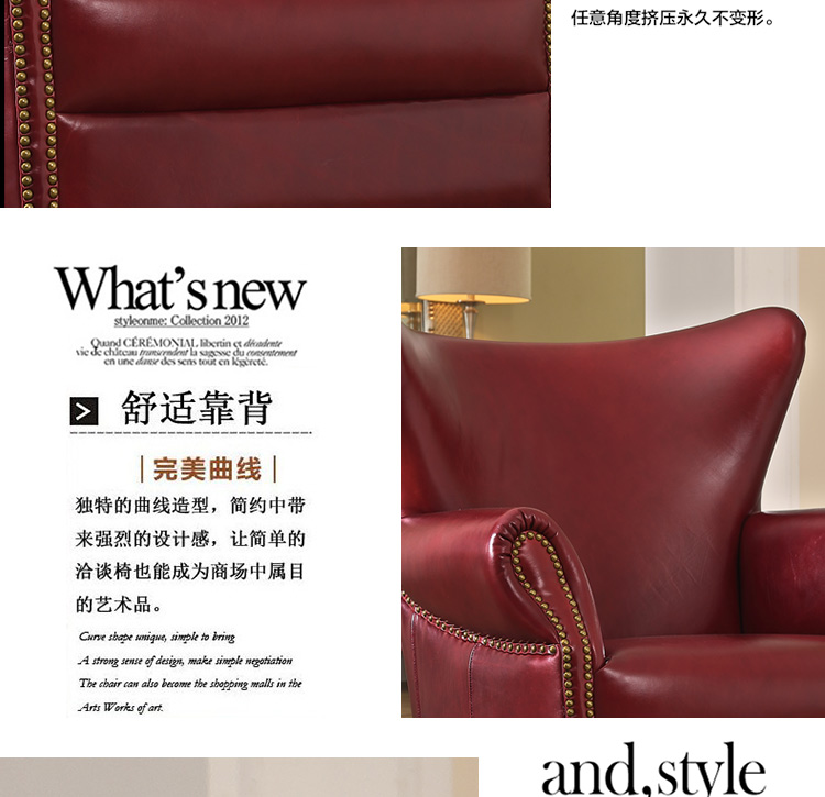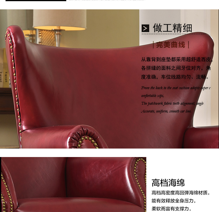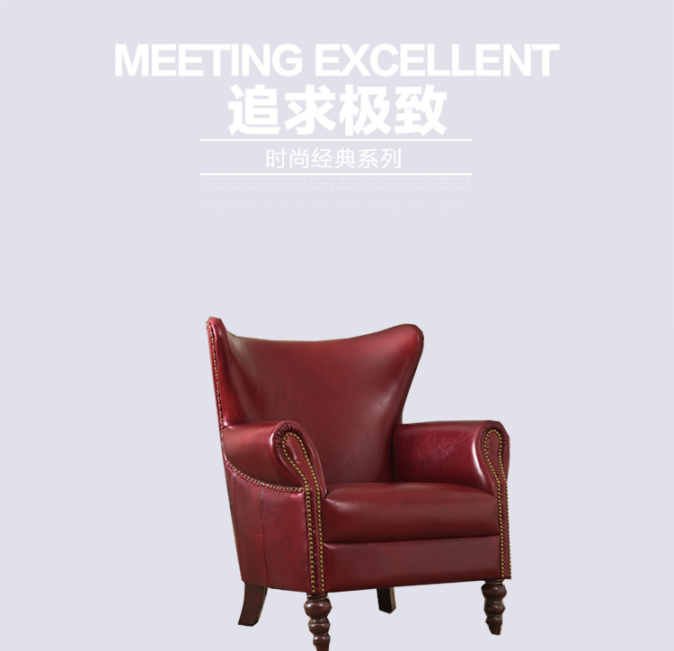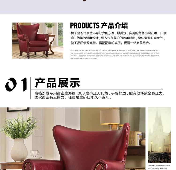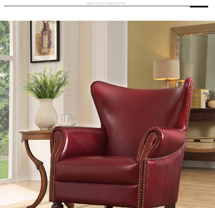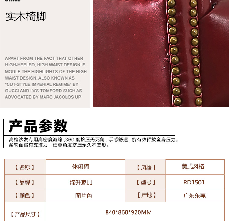 缔升家具 美式单人沙发椅子皮艺 小户型客厅卧室房间现代简约 小沙发老虎椅RD1501