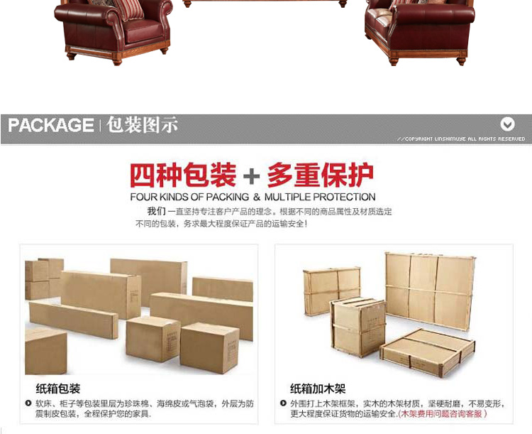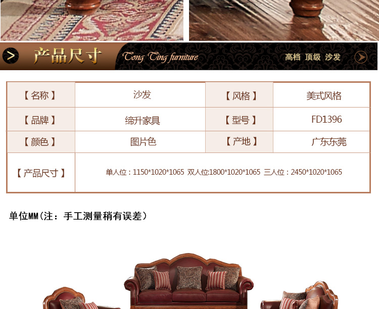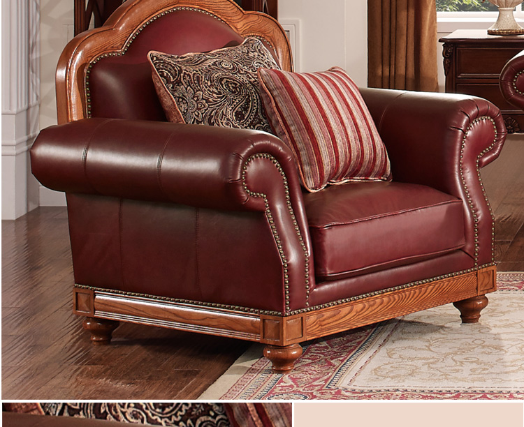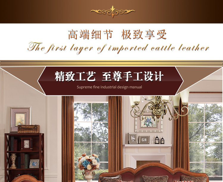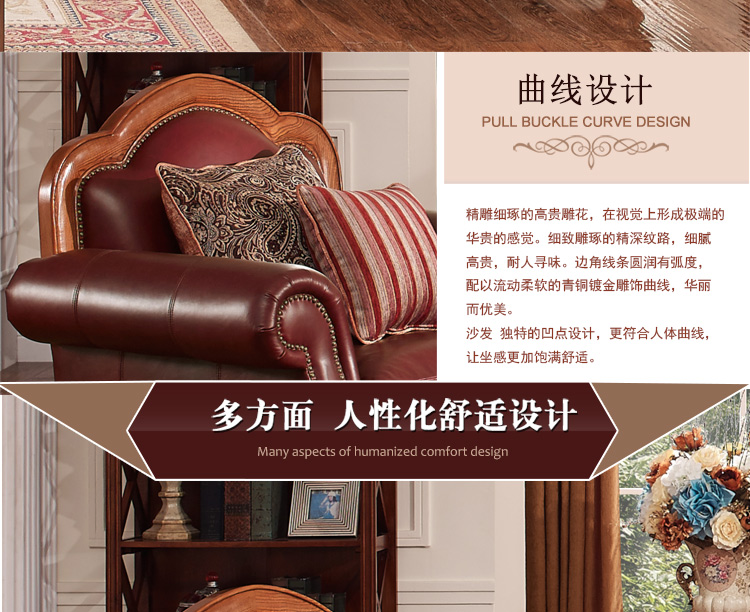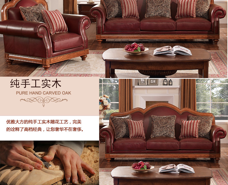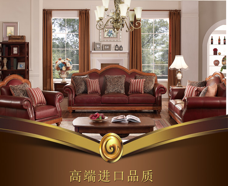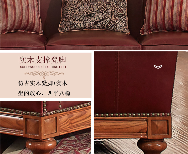 缔升家具 美式真皮沙发客厅家具小户型美式皮艺沙发组合三人位 FD1396