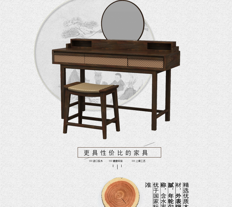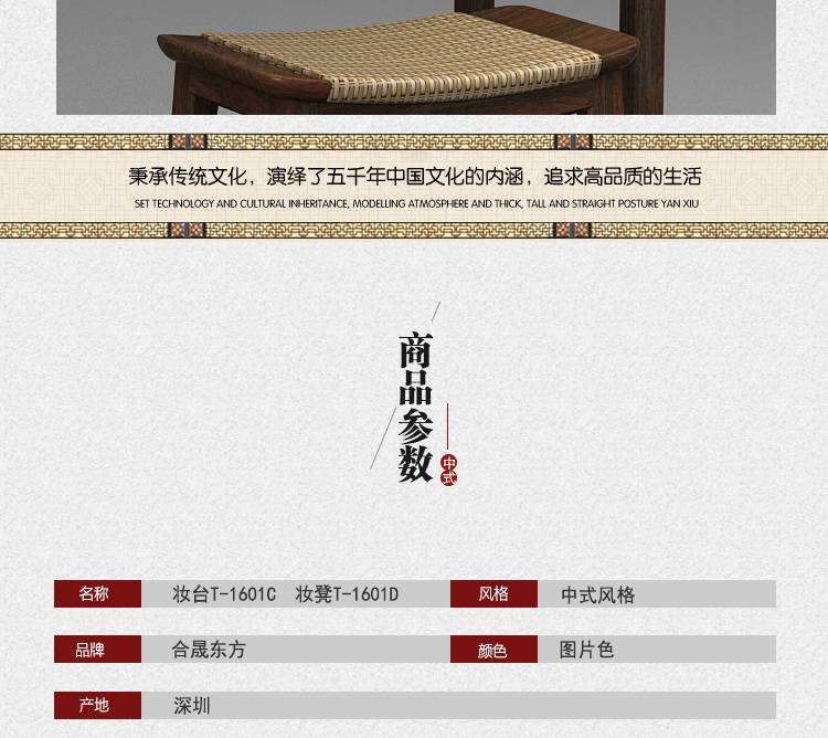 合晟东方卧室高档休闲创意妆台妆凳中式风格仿古化妆台T-1601C
