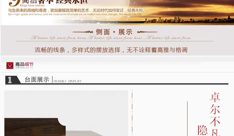 秉承灵感无限的美学创意思想,将艺术和传统文化融入家具设计,每一个细节都表现出家具的品味和自我的风格,折射出家具的文化和强烈个性。朴实简洁不华丽,没有繁多琐碎的花式设计,打造一个时尚完美的家。