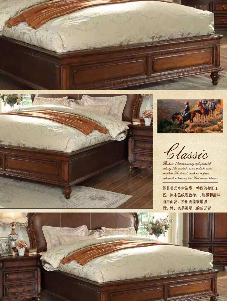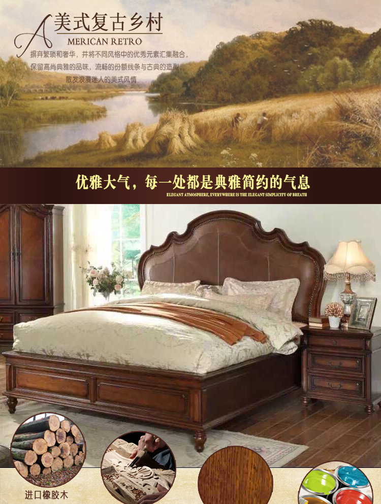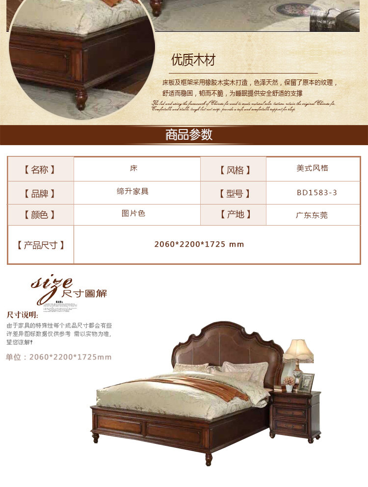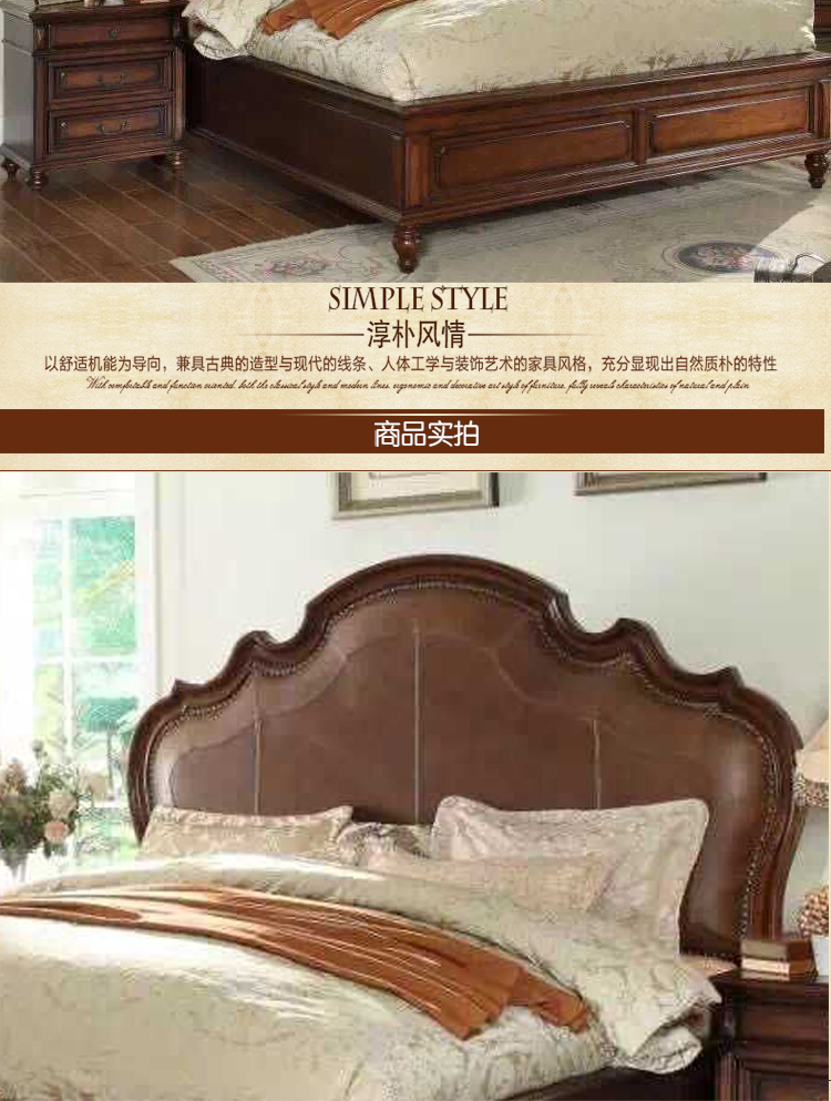 缔升家具 美式实木床 宜家简约橡胶木牛皮床 高档卧室双人床BD1583-3