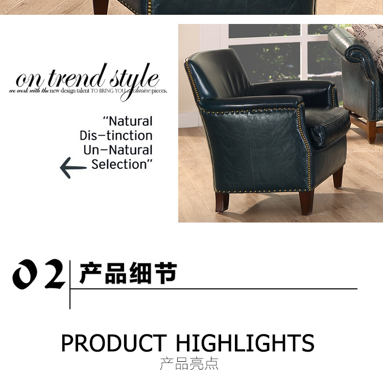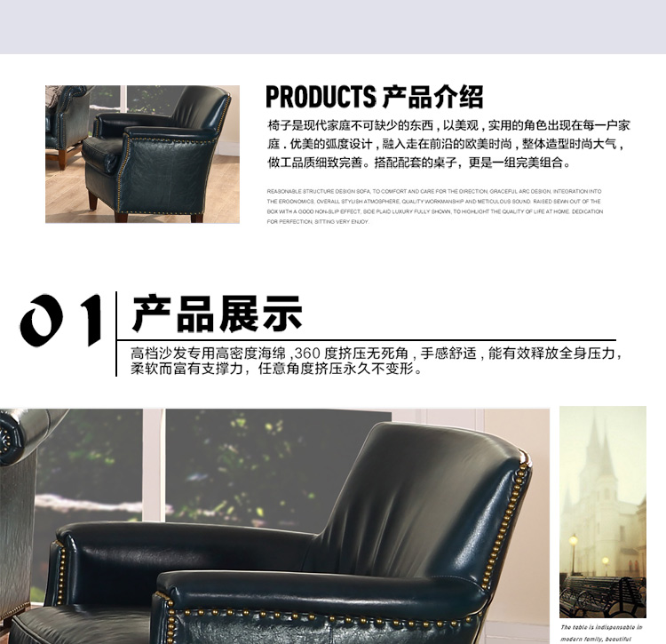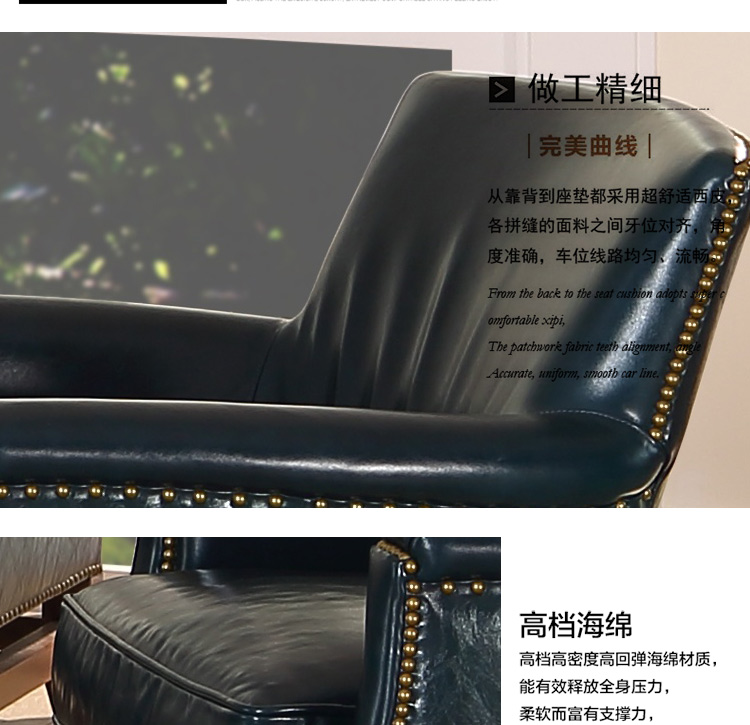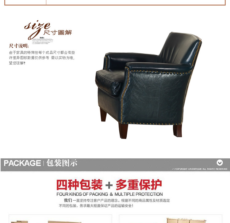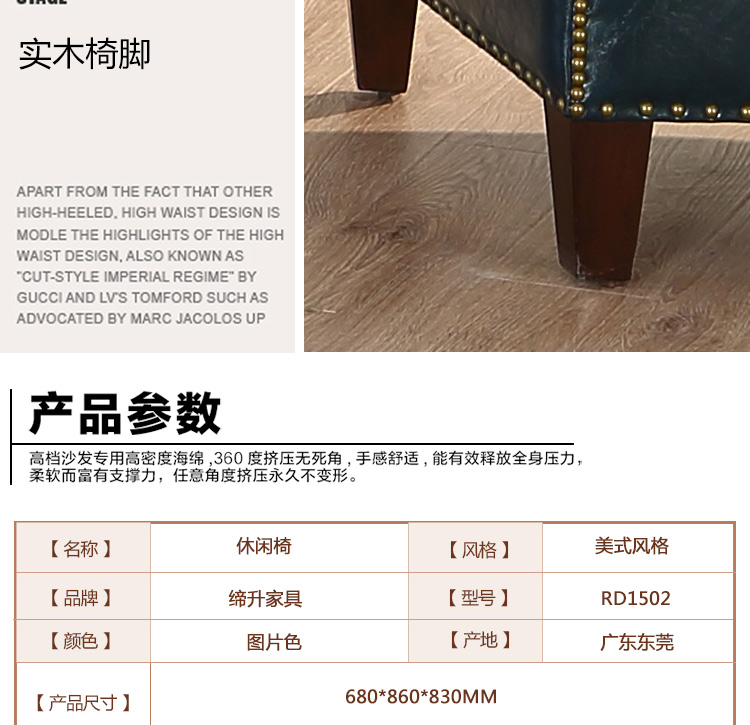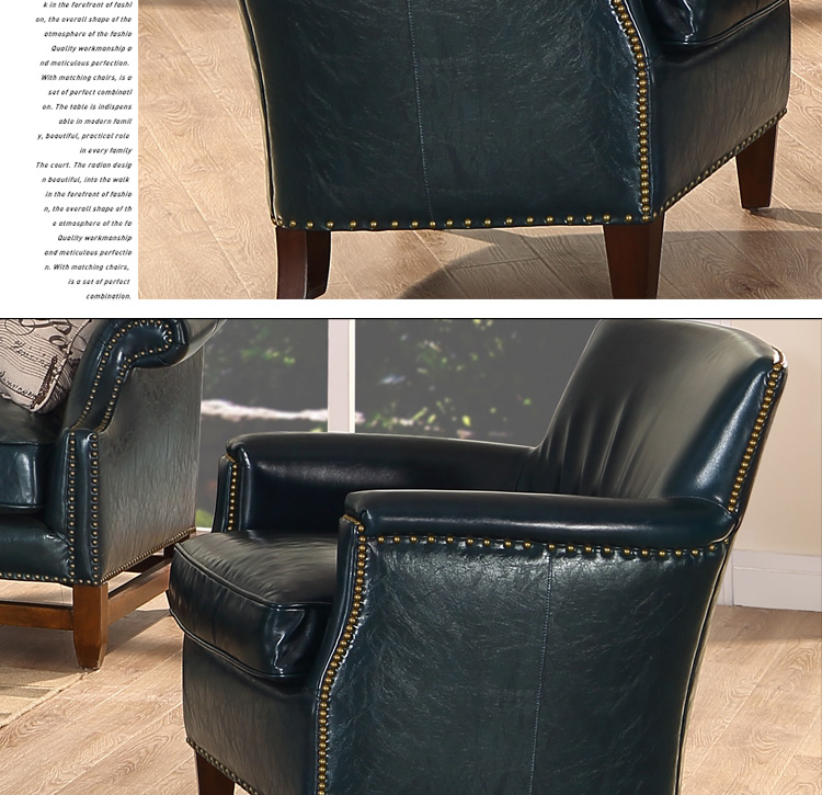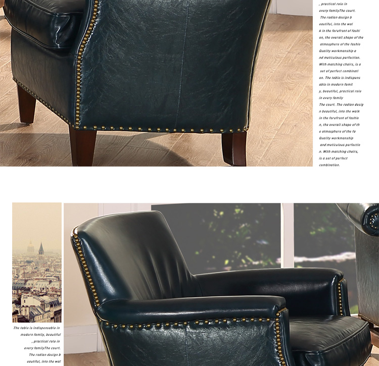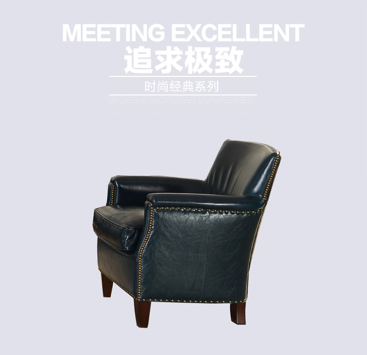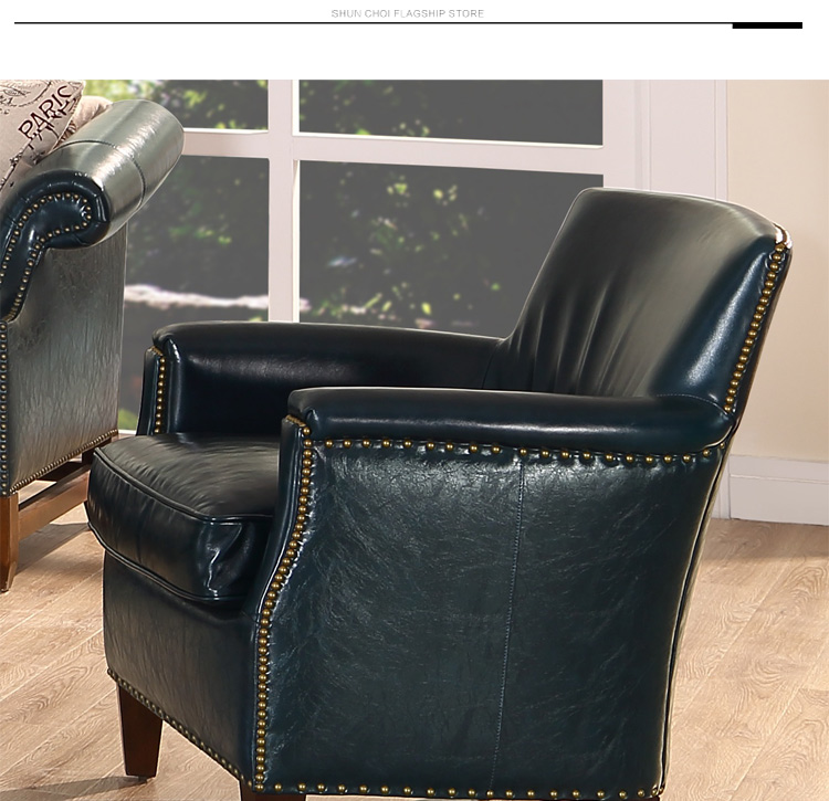 缔升家具 单人沙发美式皮艺沙发小户型 简易客厅真皮沙发椅子 RD1502