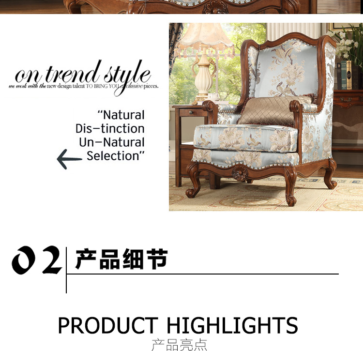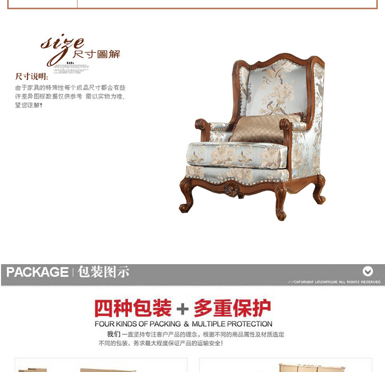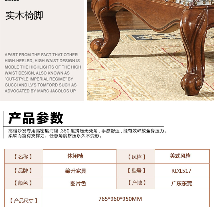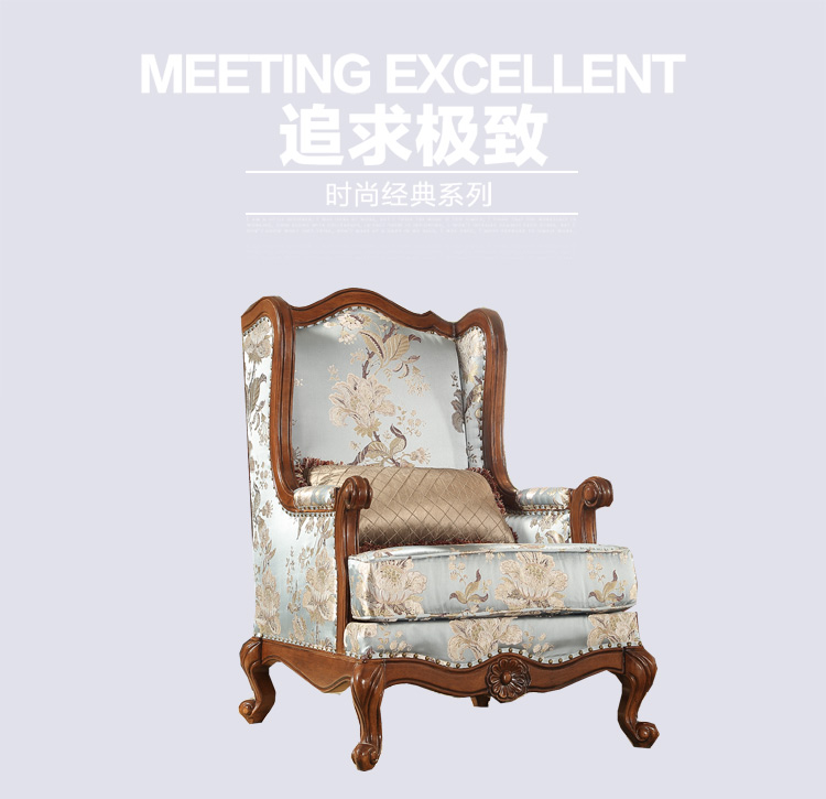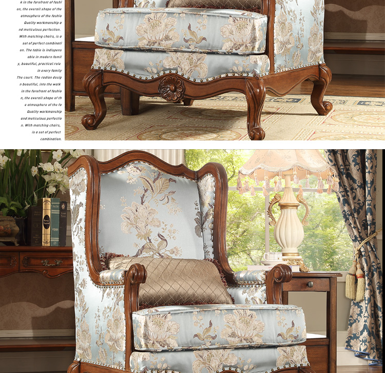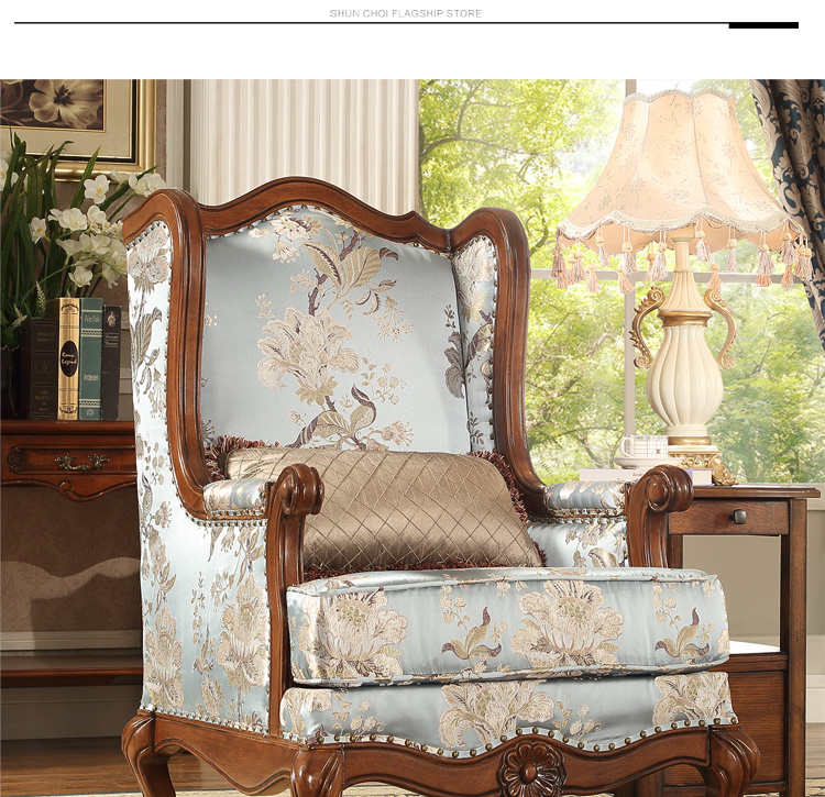 缔升家具 美式乡村单人沙发椅 咖啡椅围椅 酒店布艺沙发休闲卡座RD1517