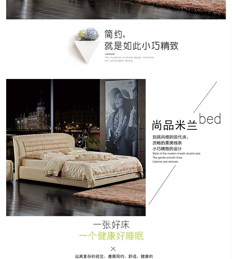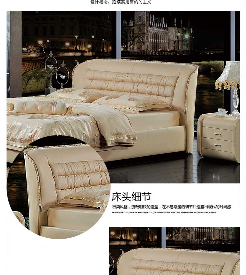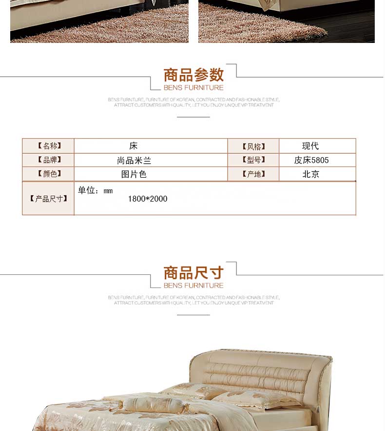 尚品米兰新款床1.8米双人皮艺床简约现代婚床软体床皮床5805