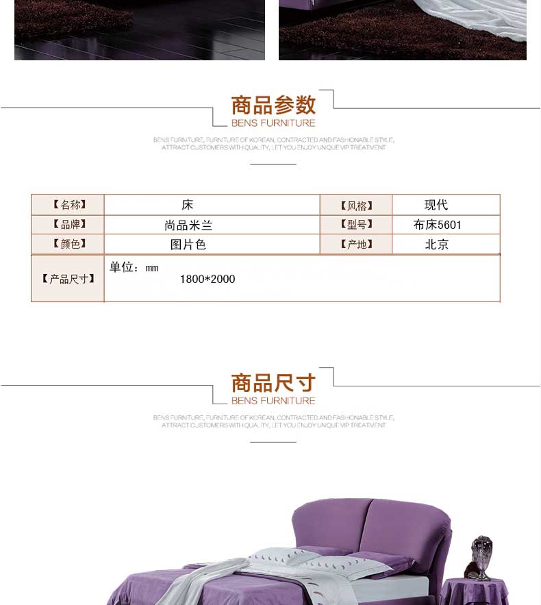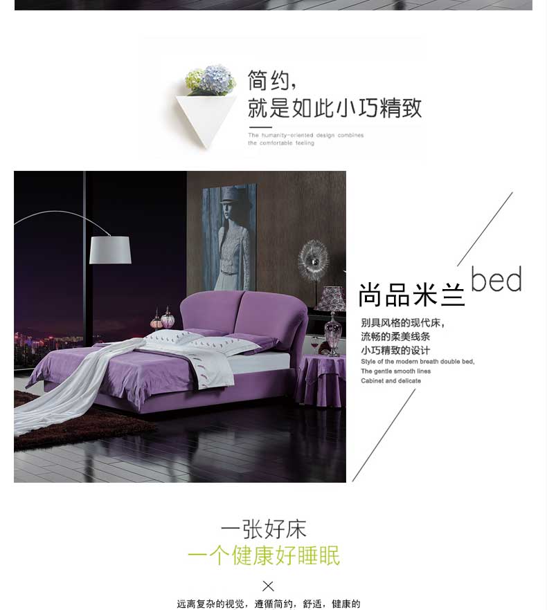尚品米兰简约时尚现代布艺公主结婚床高档双人床布床5601