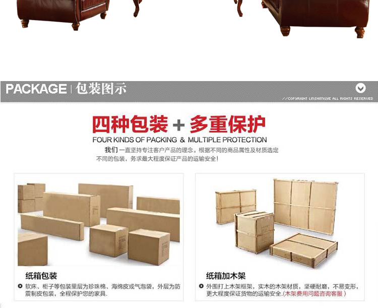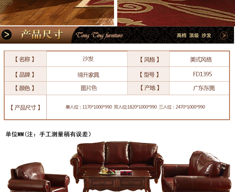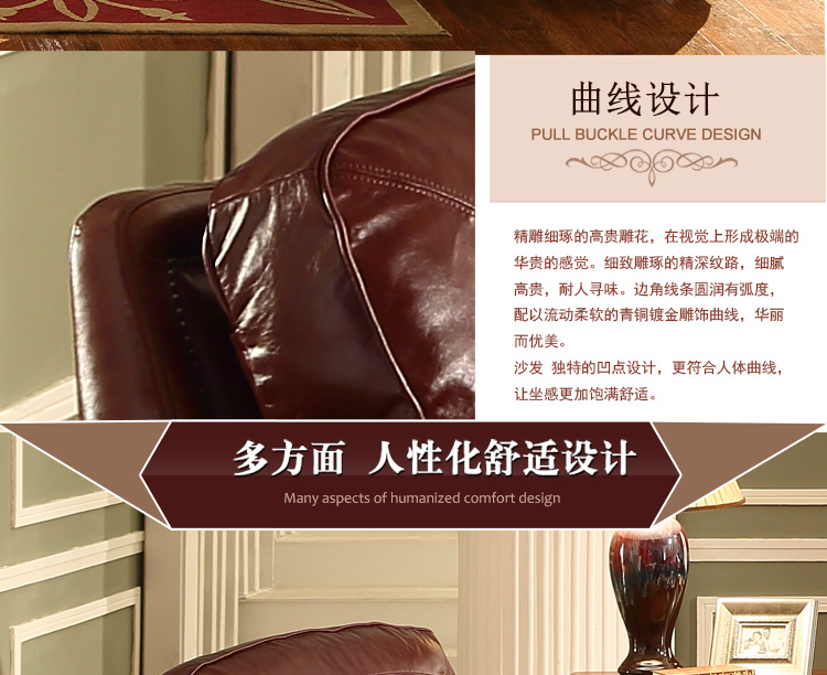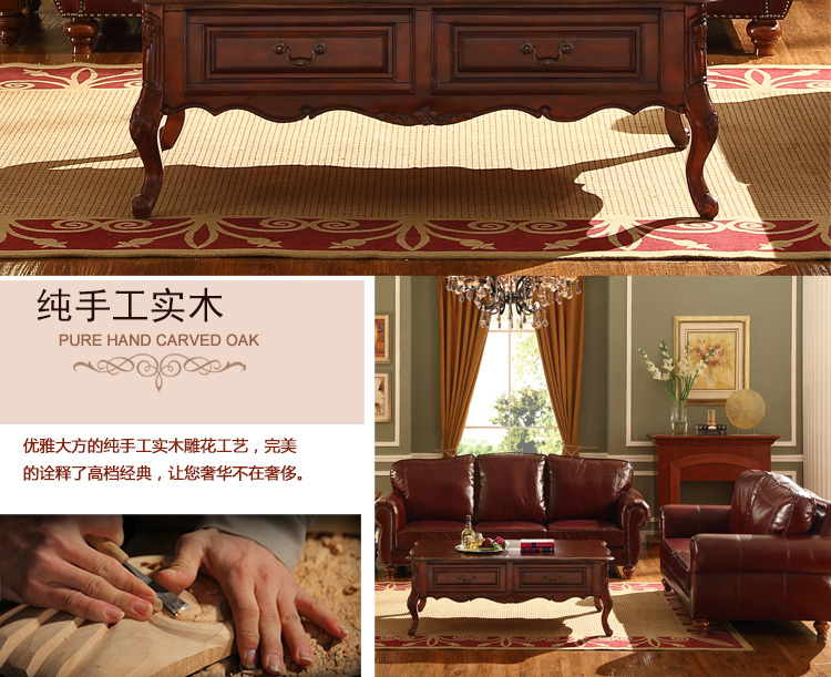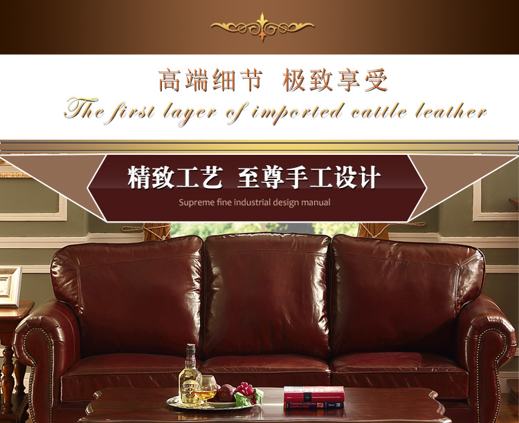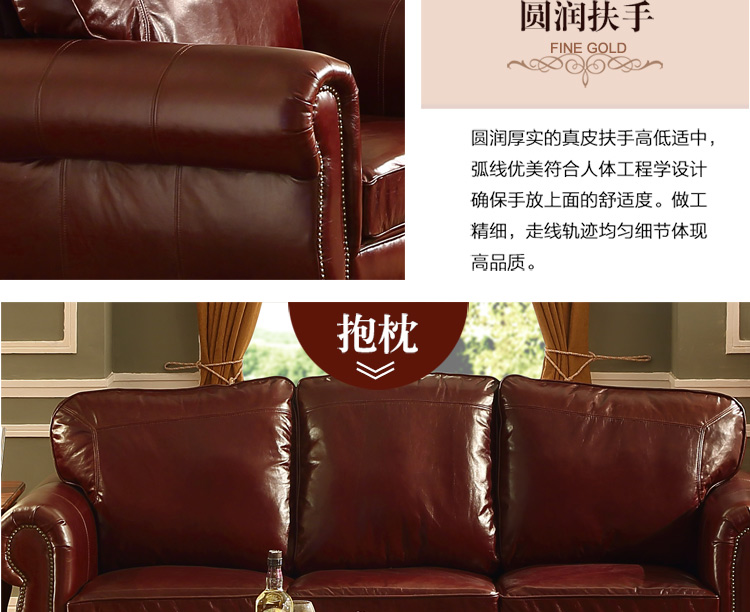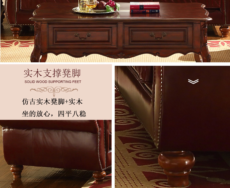 缔升家具 美式双人真皮沙发一二三人组合皮艺沙发复古家具 FD1395