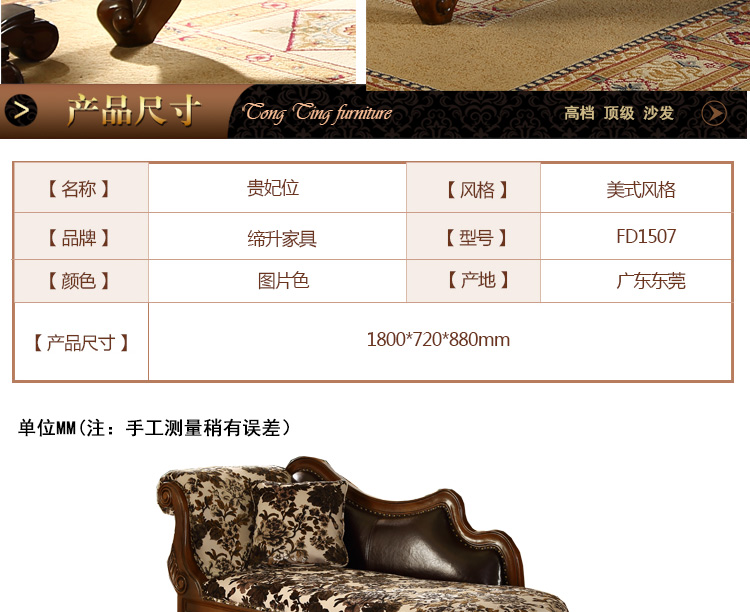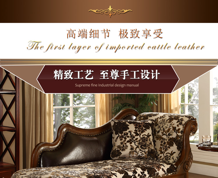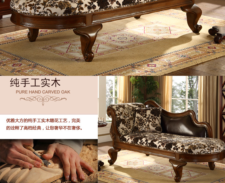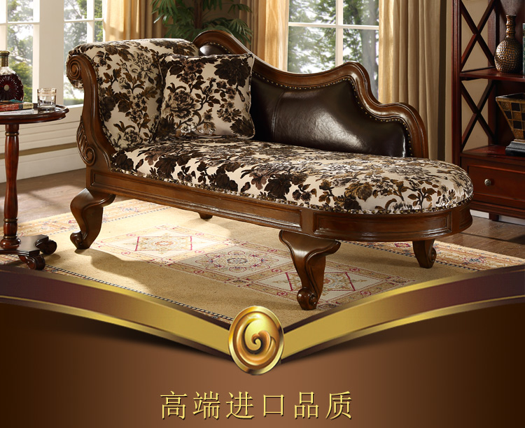 缔升家具 美式实木布艺贵妃椅 躺椅沙发贵妃皮艺沙发 FD1507
