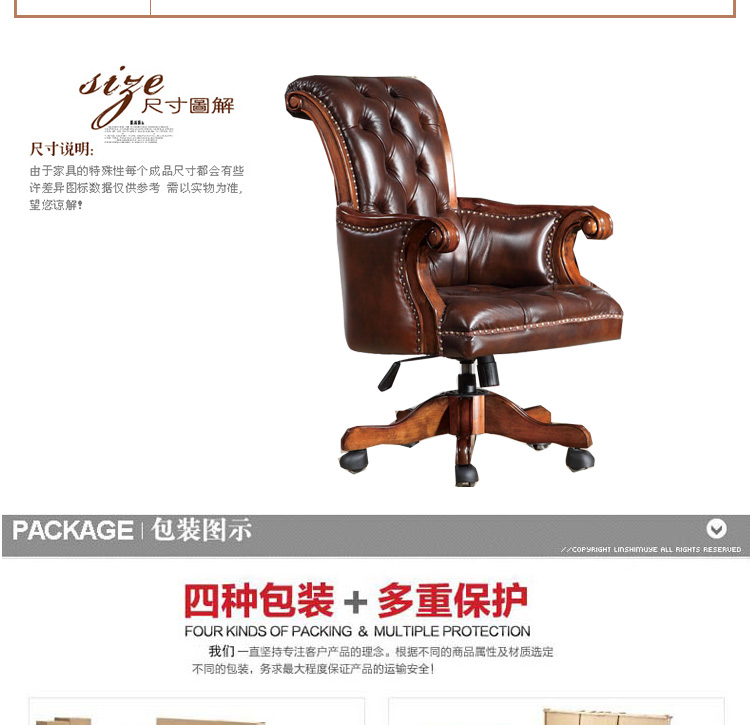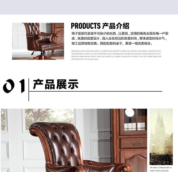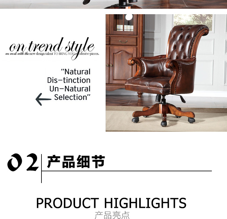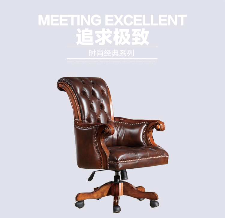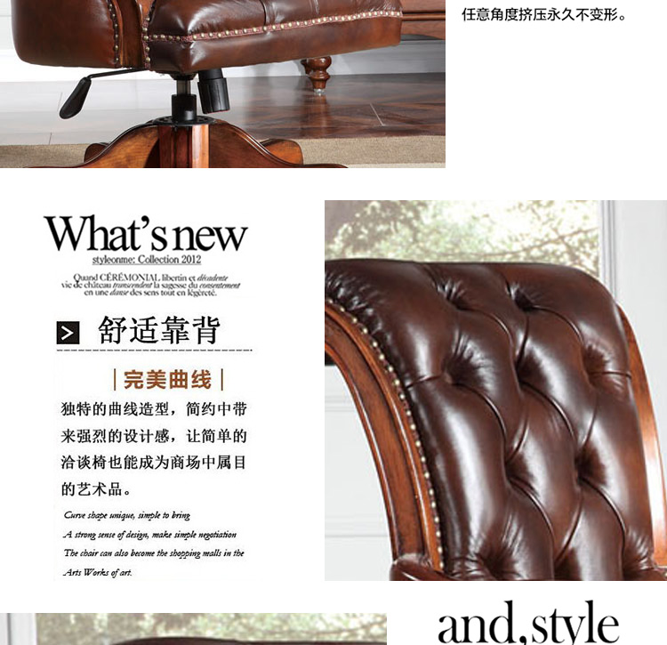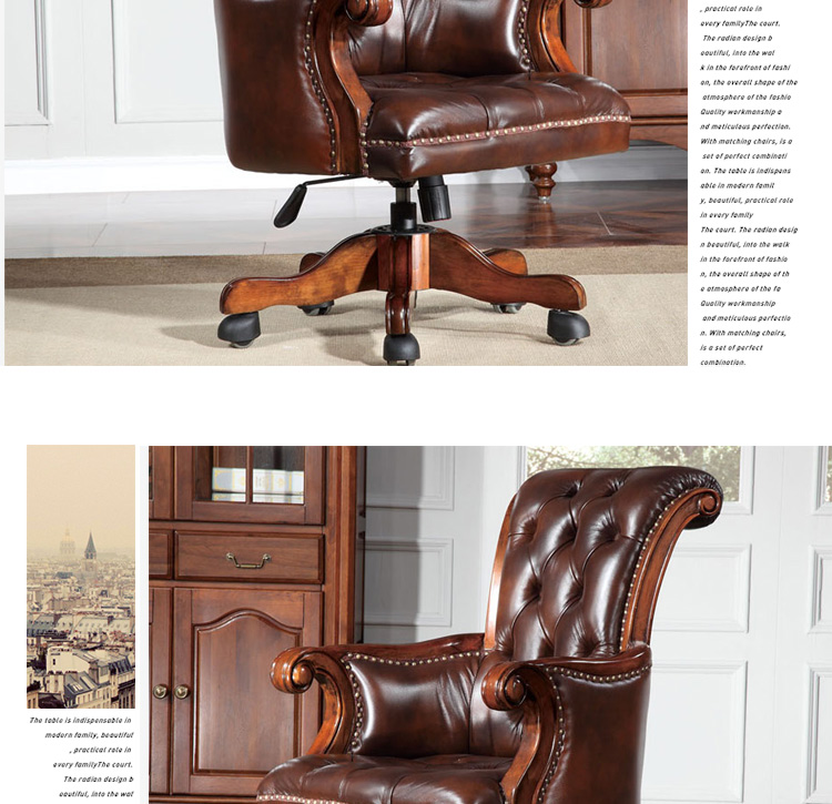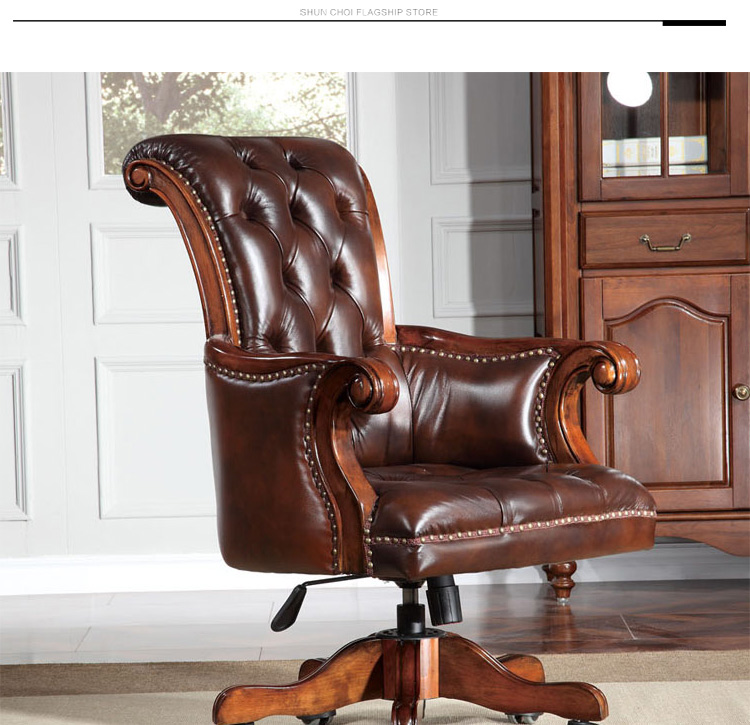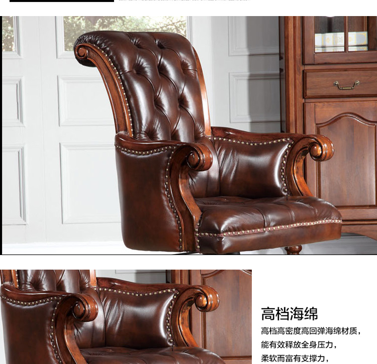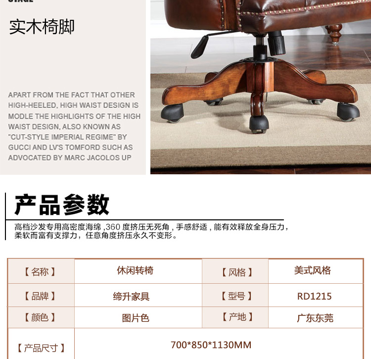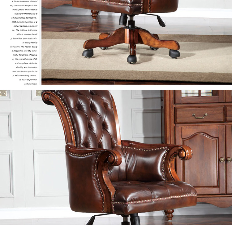 缔升家具 美式旋转椅真皮老板椅休闲椅子 电脑椅实木书椅 RD1215