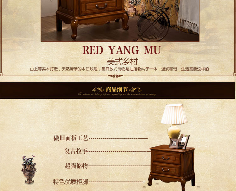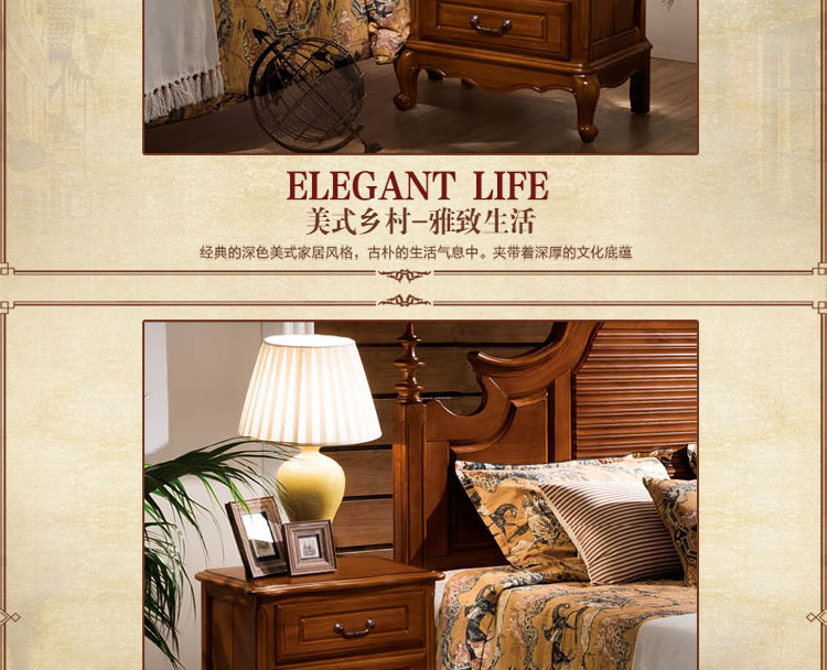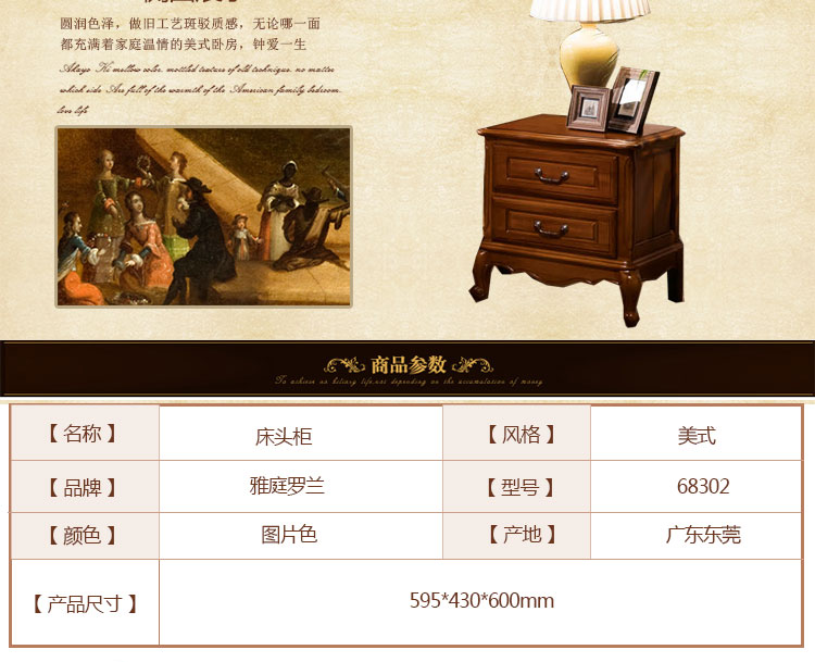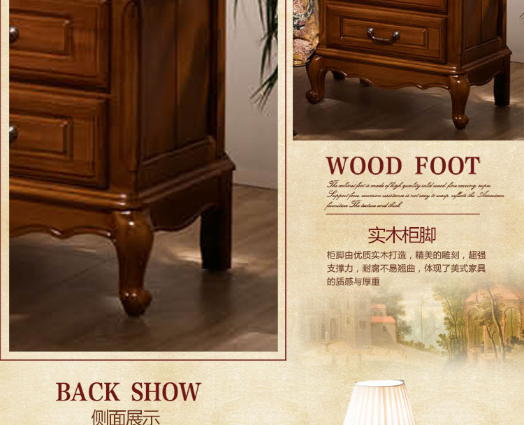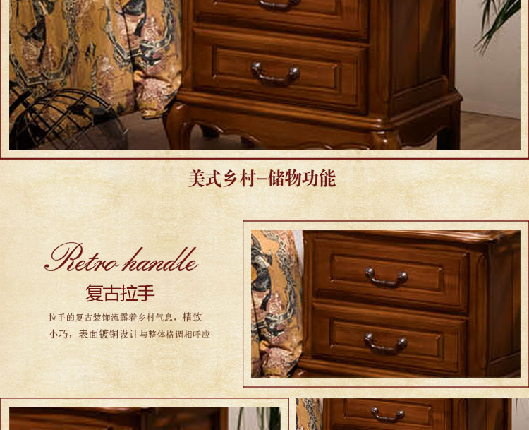 雅庭罗兰 全实木床头柜美式卧室储物柜斗柜美式家具 68302