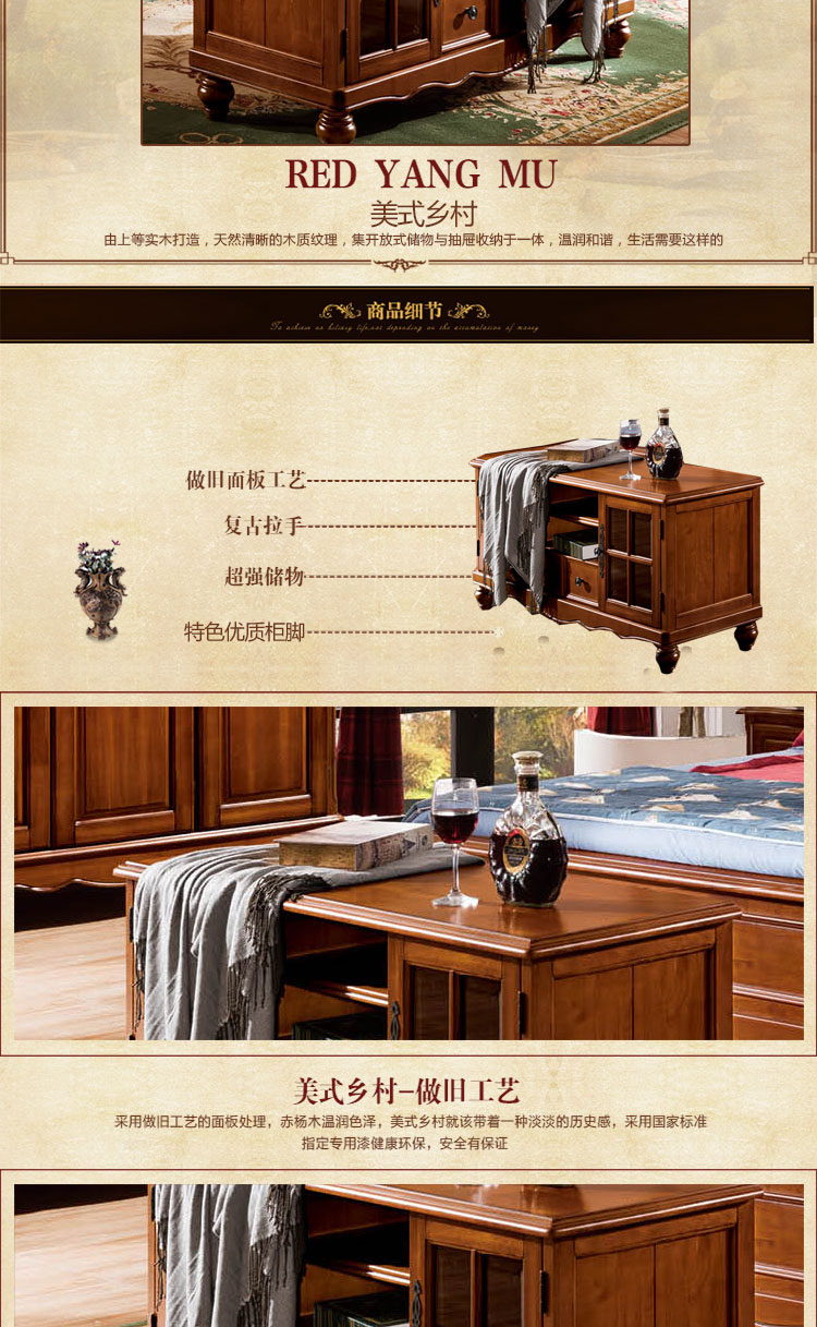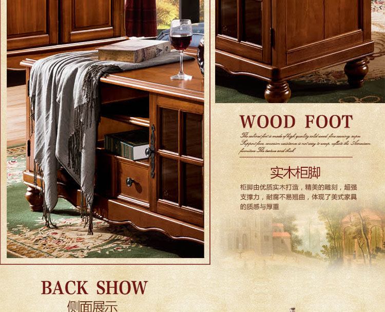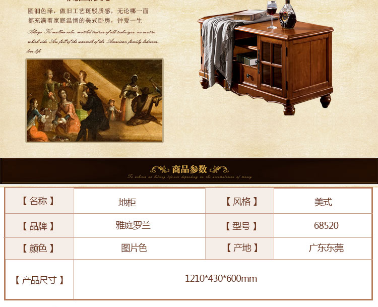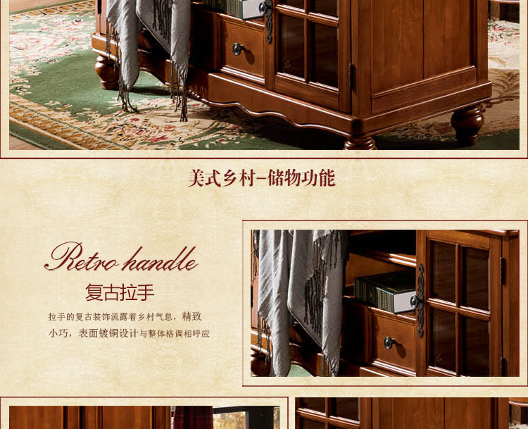 雅庭罗兰 美式乡村电视柜 小户型现代客厅储物地柜实木电视柜简约 68520