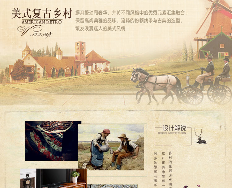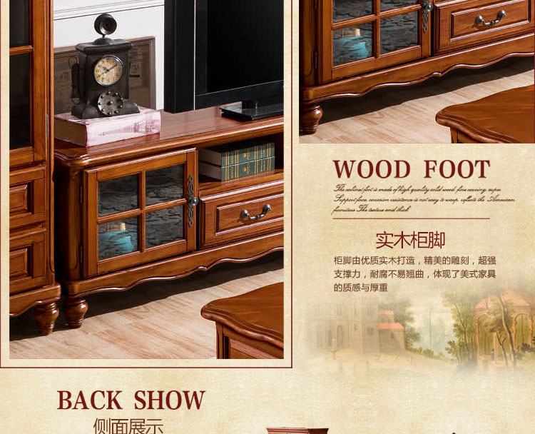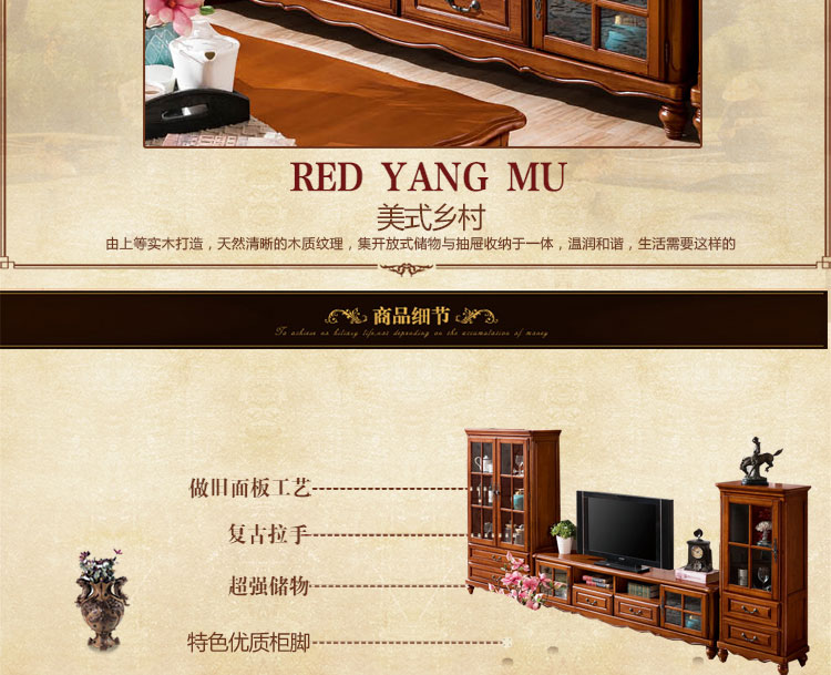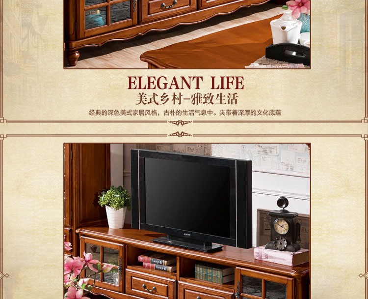 雅庭罗兰 美式乡村实木电视柜小户型做旧电视柜简约客厅家具 68521