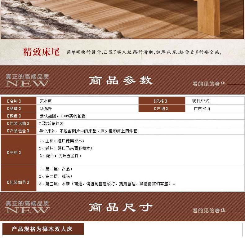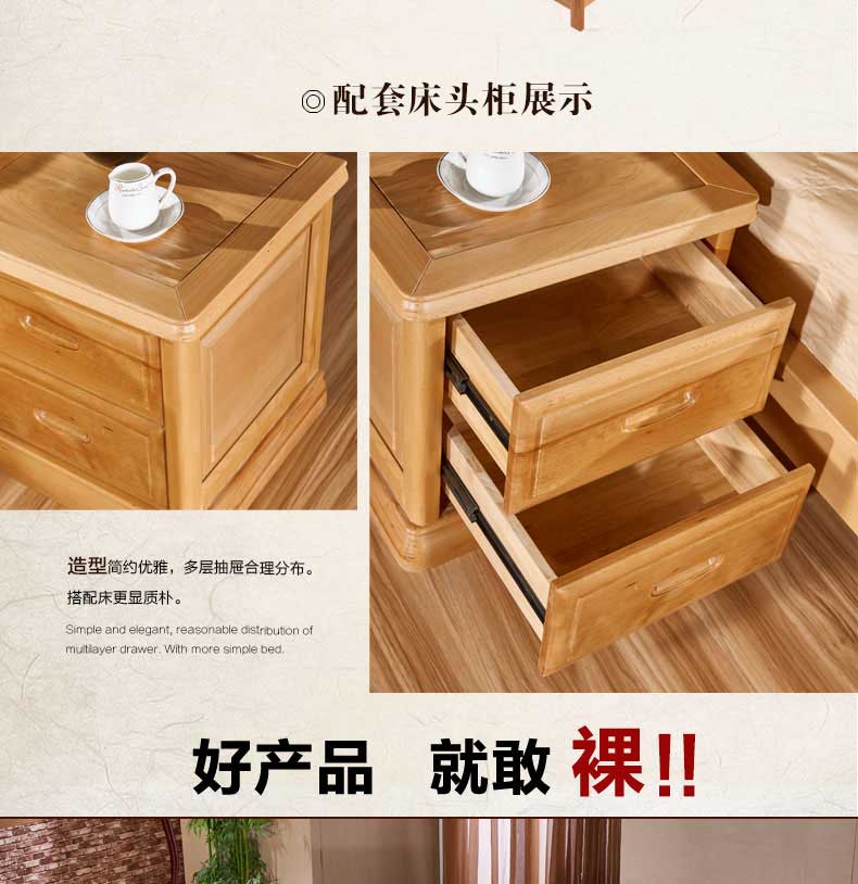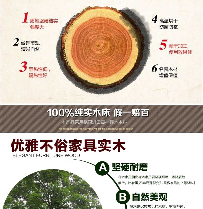 选用材料100%绿色环保,健康无忧环保零甲醛,产品均通过国家质检认证。全进口实木,厚重结实,不贴皮。朴实简洁不华丽,没有繁多琐碎的花式设计,满屋温和的原木色家居,打造一个时尚完美的家。