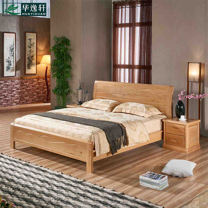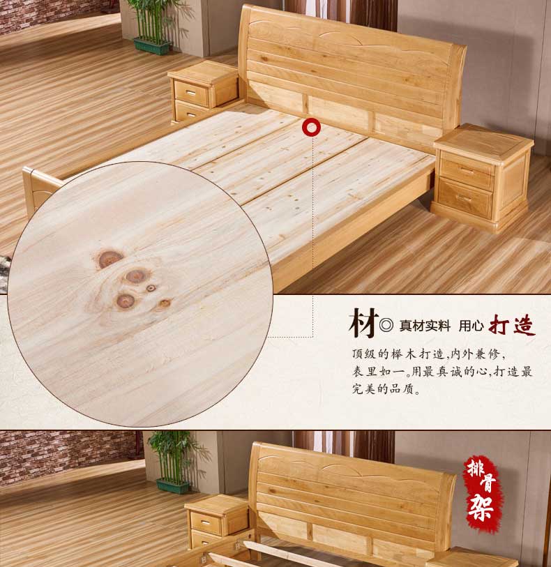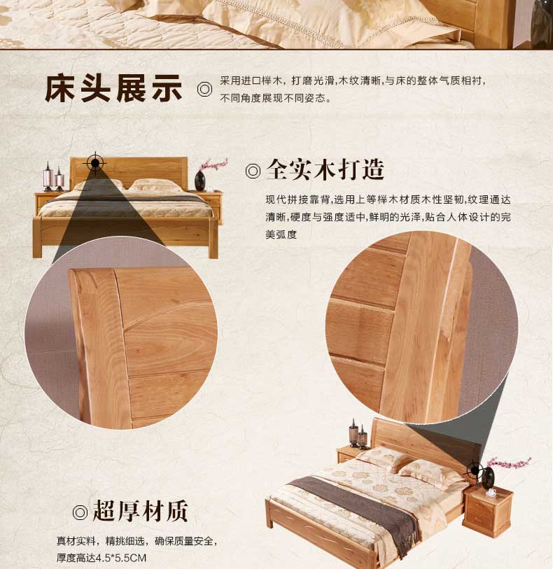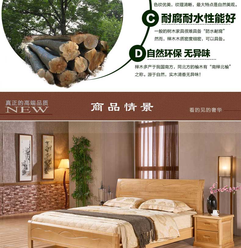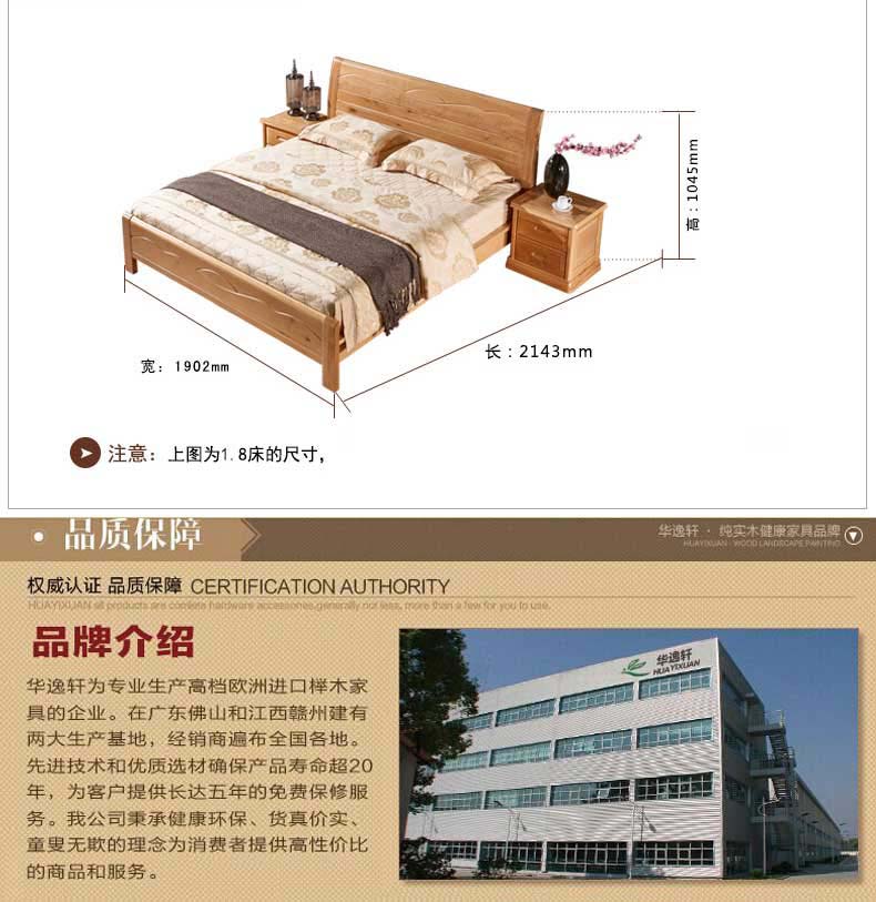 华逸轩全实木榉木床 1.8米双人床中式现代家具简约成人婚床ws518