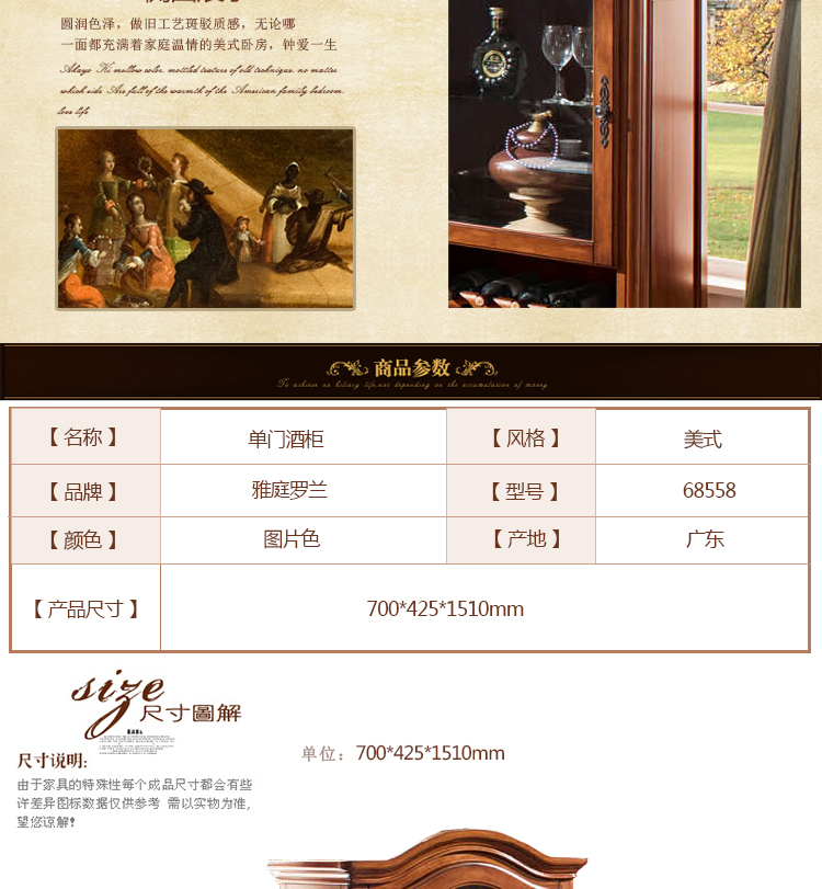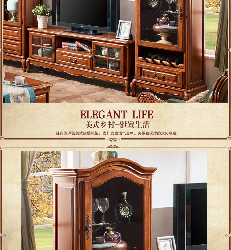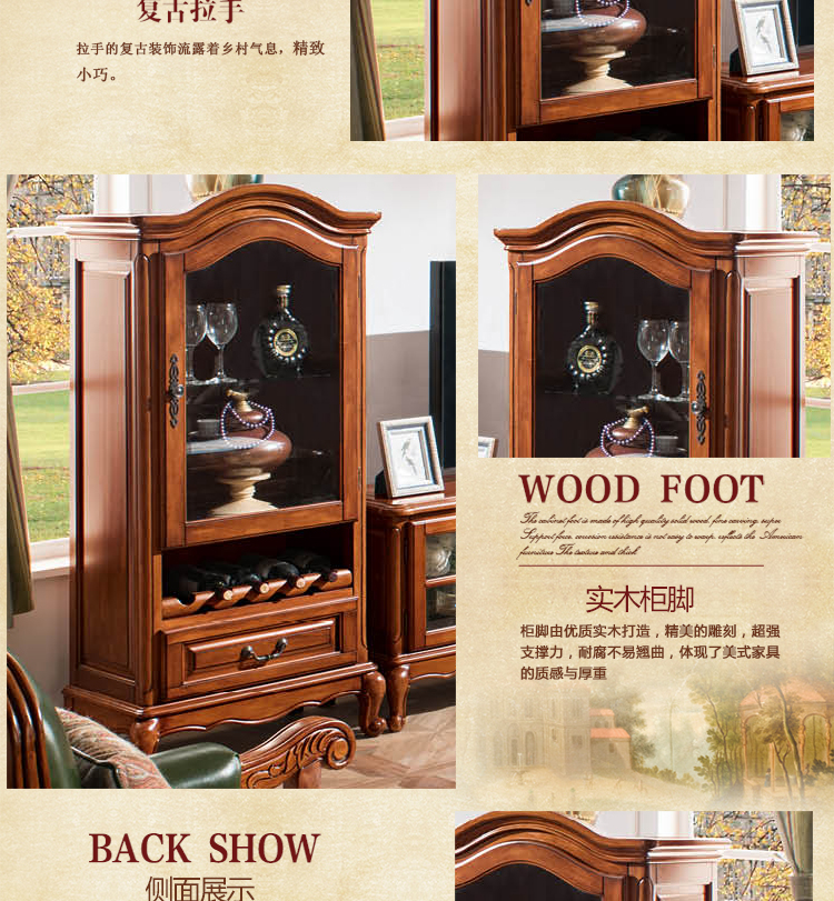 雅庭罗兰 美式酒柜门厅酒柜展示柜小酒柜客厅多功能高柜 68558